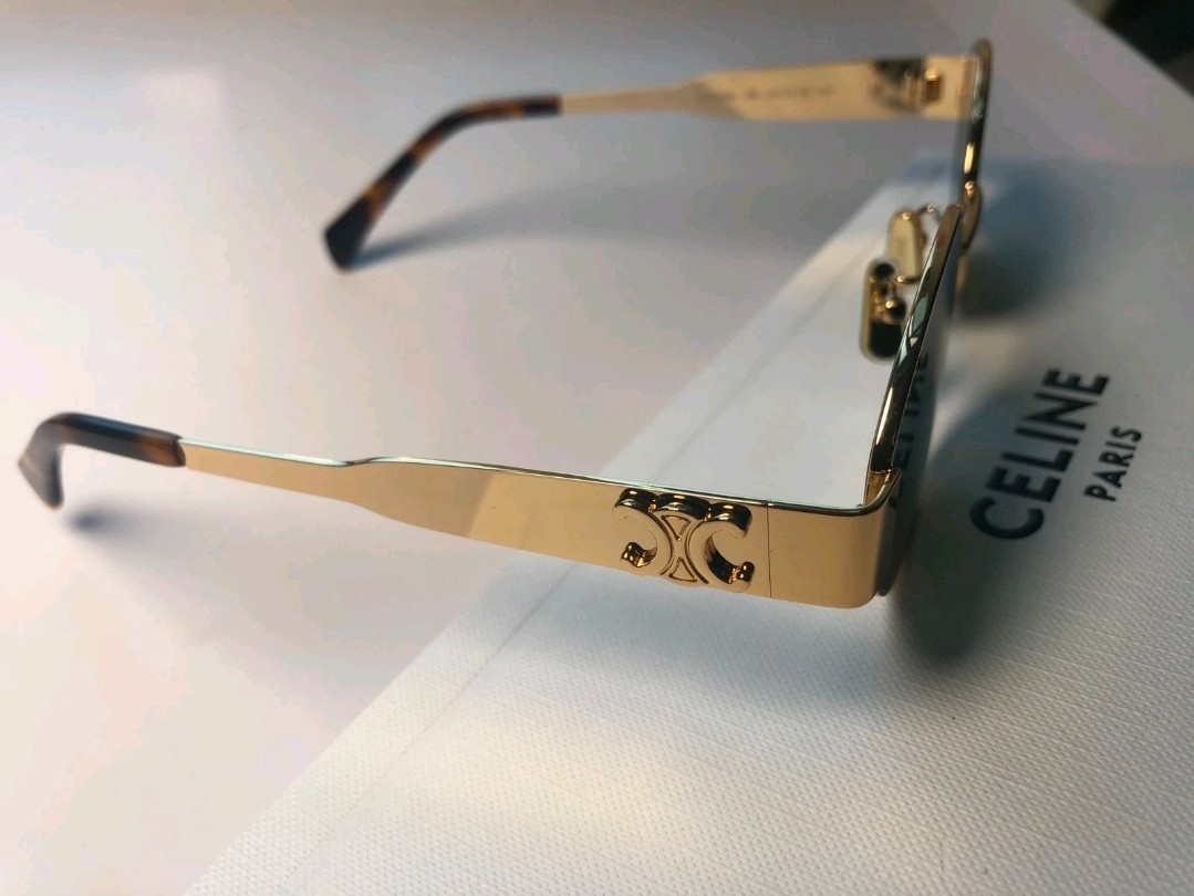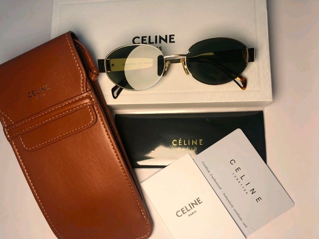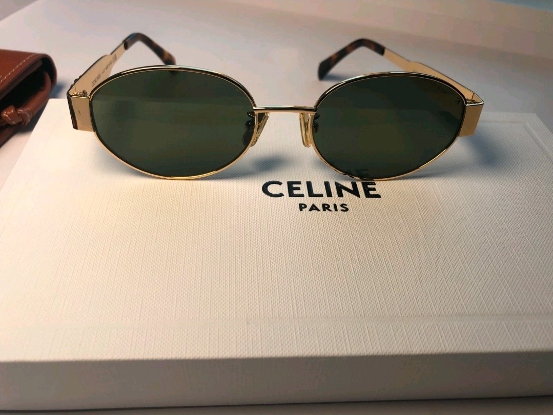 как выглядит Celine CL40235U 30N Triomphe Metal Oval Sunglasses Gold Green Lens FREE SHIPPING фото