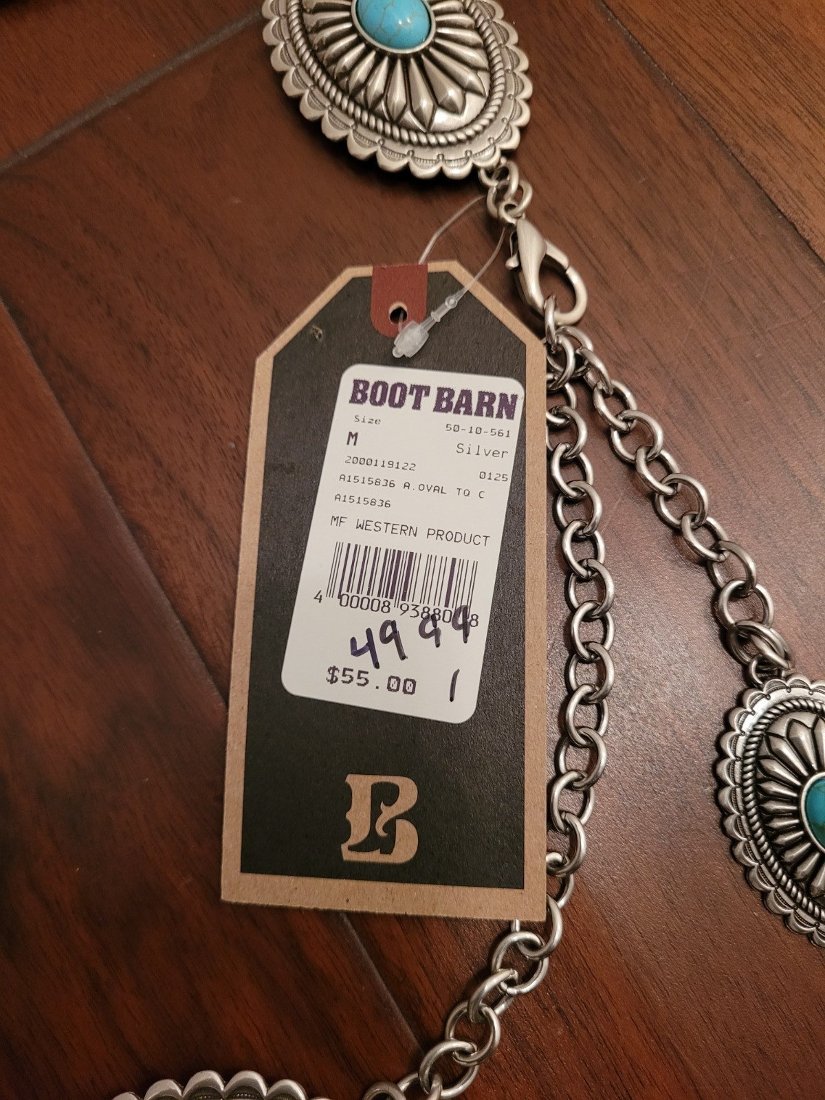 как выглядит NWT Ariat Womens Silver Turquoise Concho Link Belt Accessory Size Medium фото