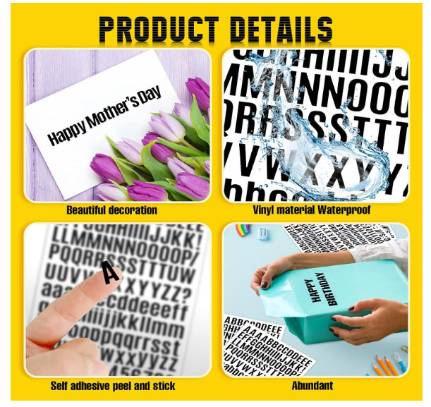 как выглядит 15 Sheet Small Letter Stickers - 1/2 Inch Black Vinyl Self Adhesive Alphabet Num фото