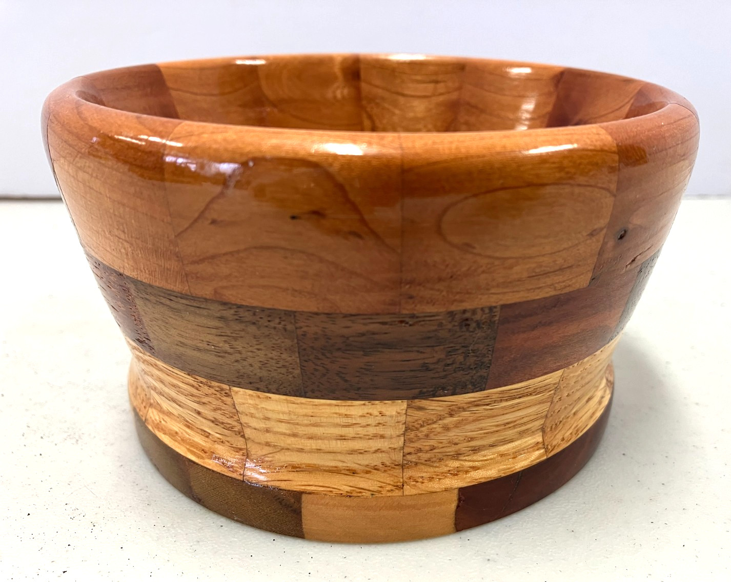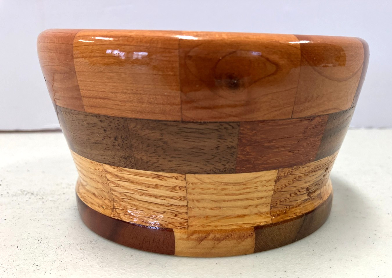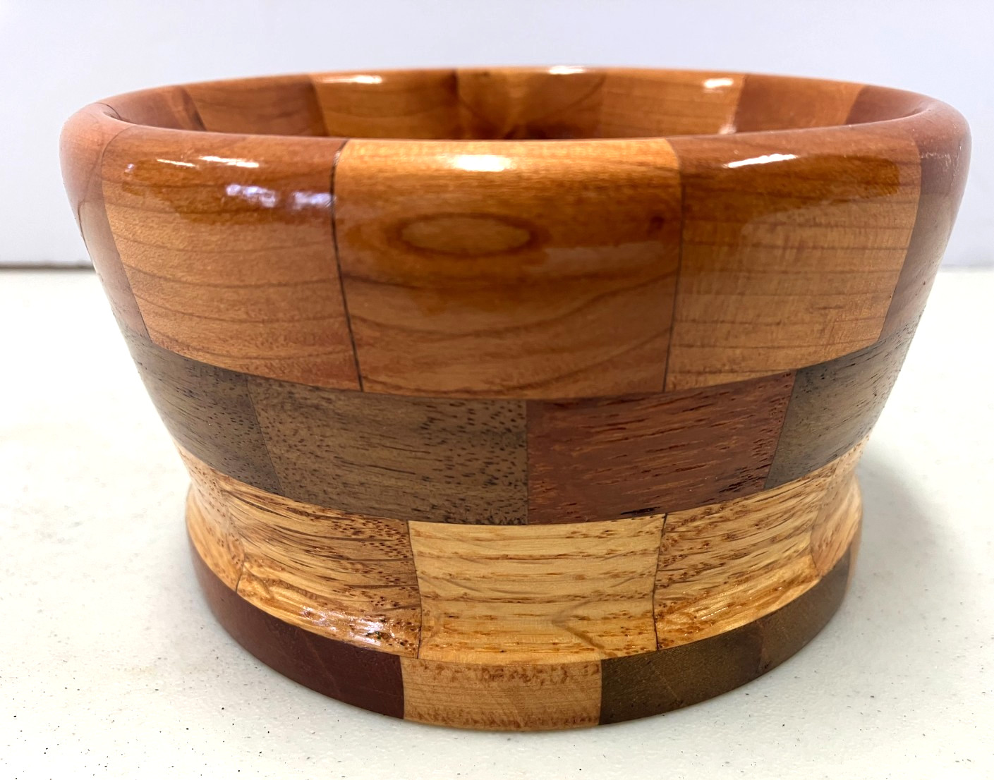 • Beautiful Hand Carved Patchwork/Mosaic Grain Wooden 5" dia x 3 tall Bowl B