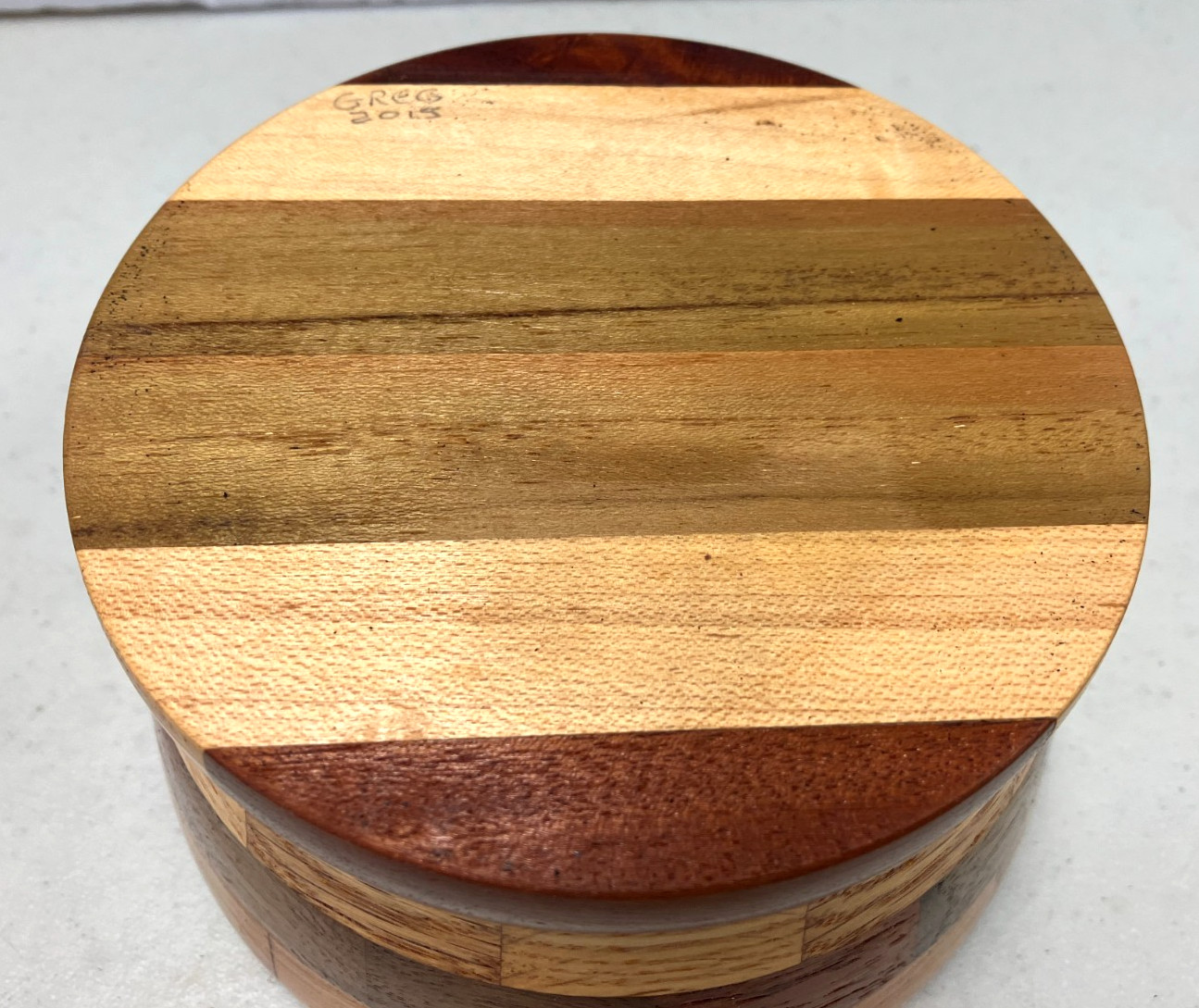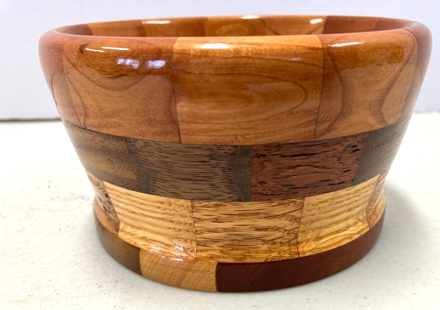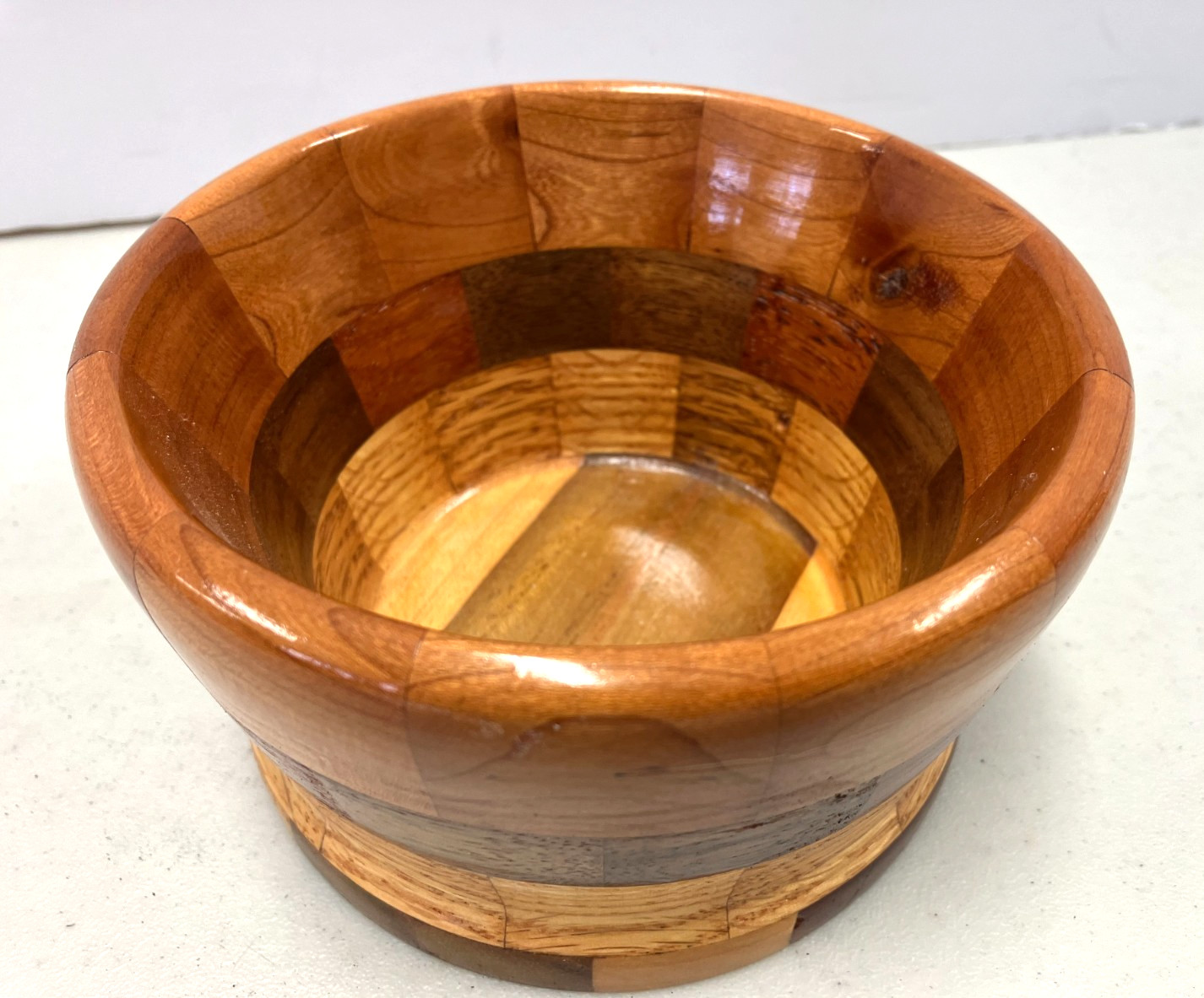 • Beautiful Hand Carved Patchwork/Mosaic Grain Wooden 5" dia x 3 tall Bowl B