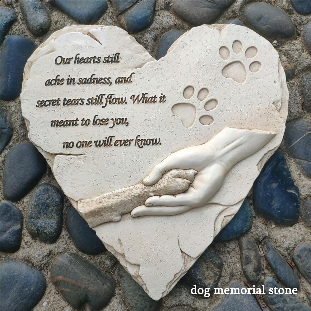 Heart Shaped Pet Memorial Stone Grave Marker for Dog or Cat, Pet Dog Garden Ston