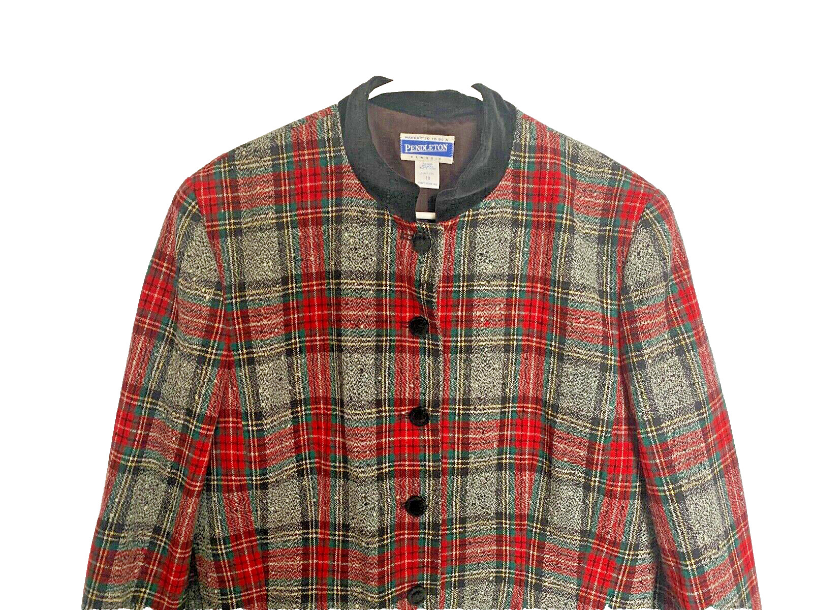 Womans Vintage Pendleton Plaid Wool Blazer Jacket W Velvet Trim Size 18