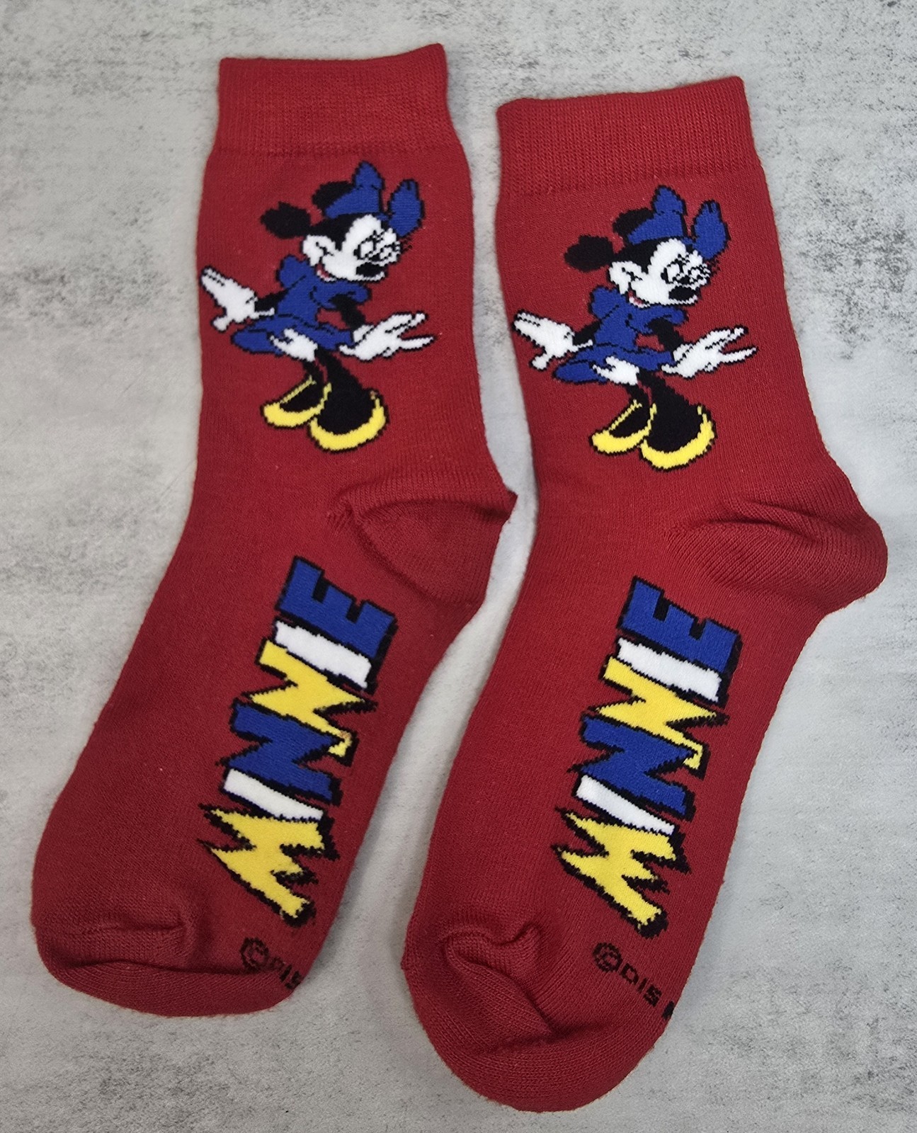 Minnie Mouse Retro Red Disney Crew Socks Blue Black Vintage Look Classic