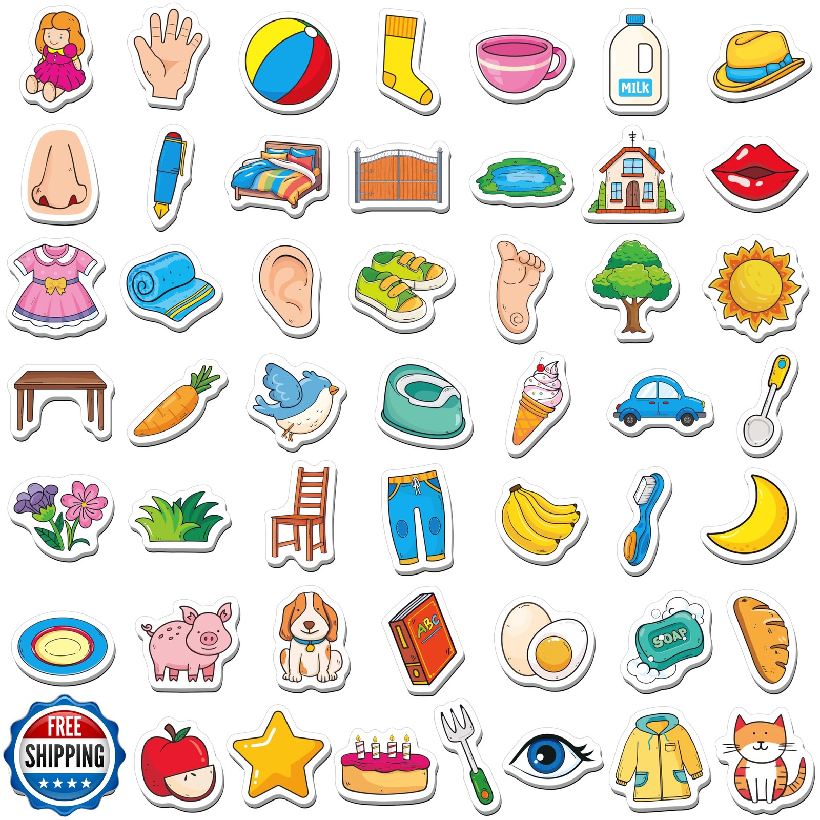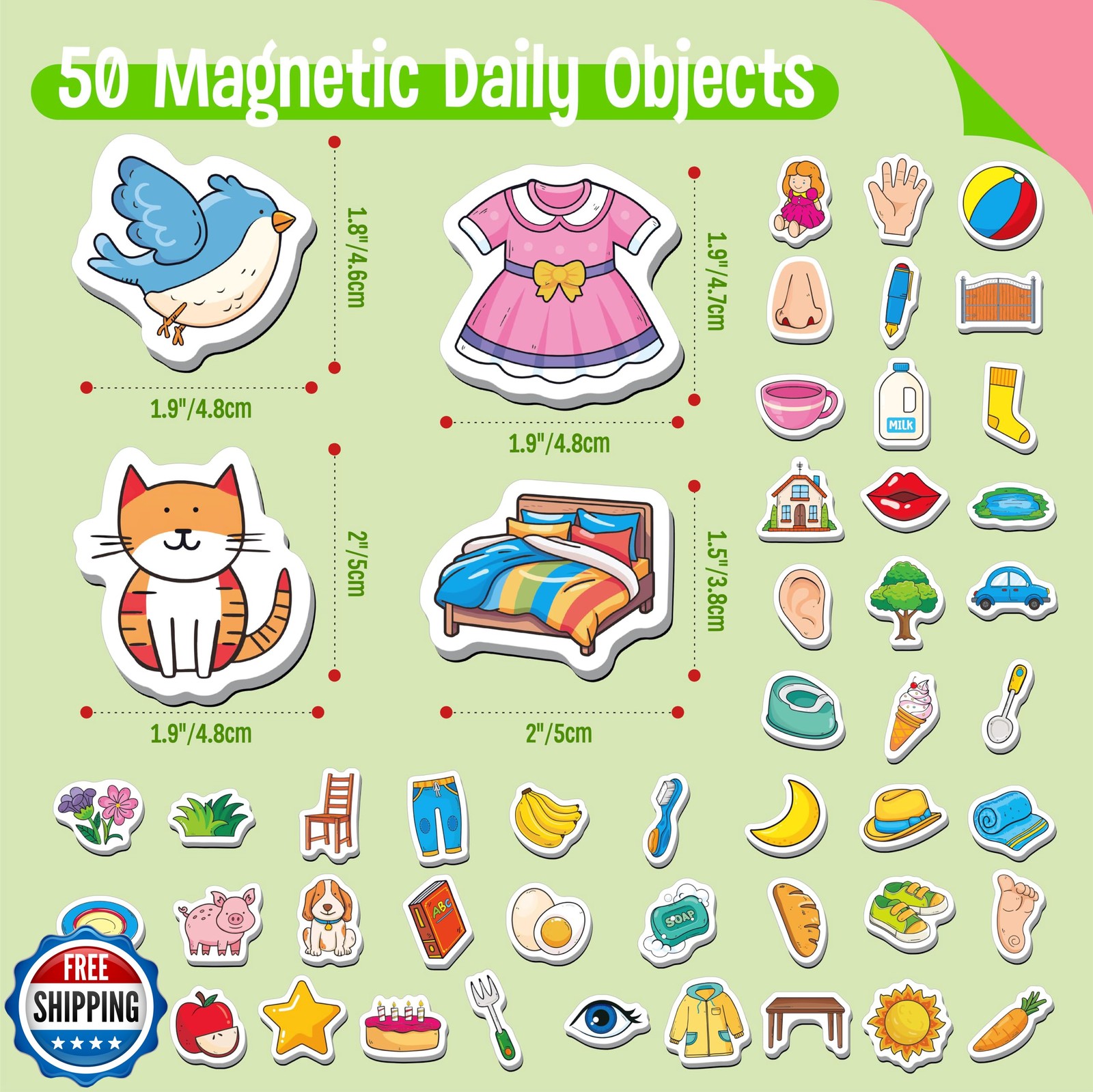 как выглядит 50 PCS First Word Magnets, Magnetic Thickened Daily Items Fridge Magnets Ador... фото