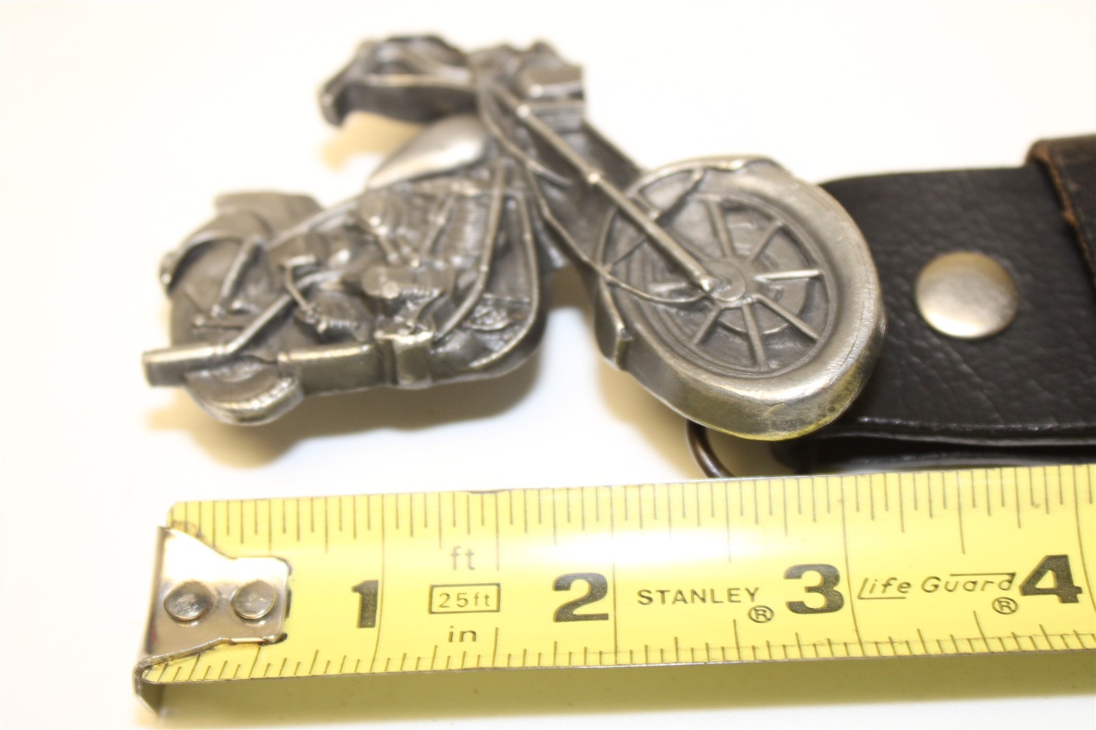 как выглядит Bergamot Brass Works 1979 USA Made Motorcycle Belt Buckle 42-44 Leather Belt фото