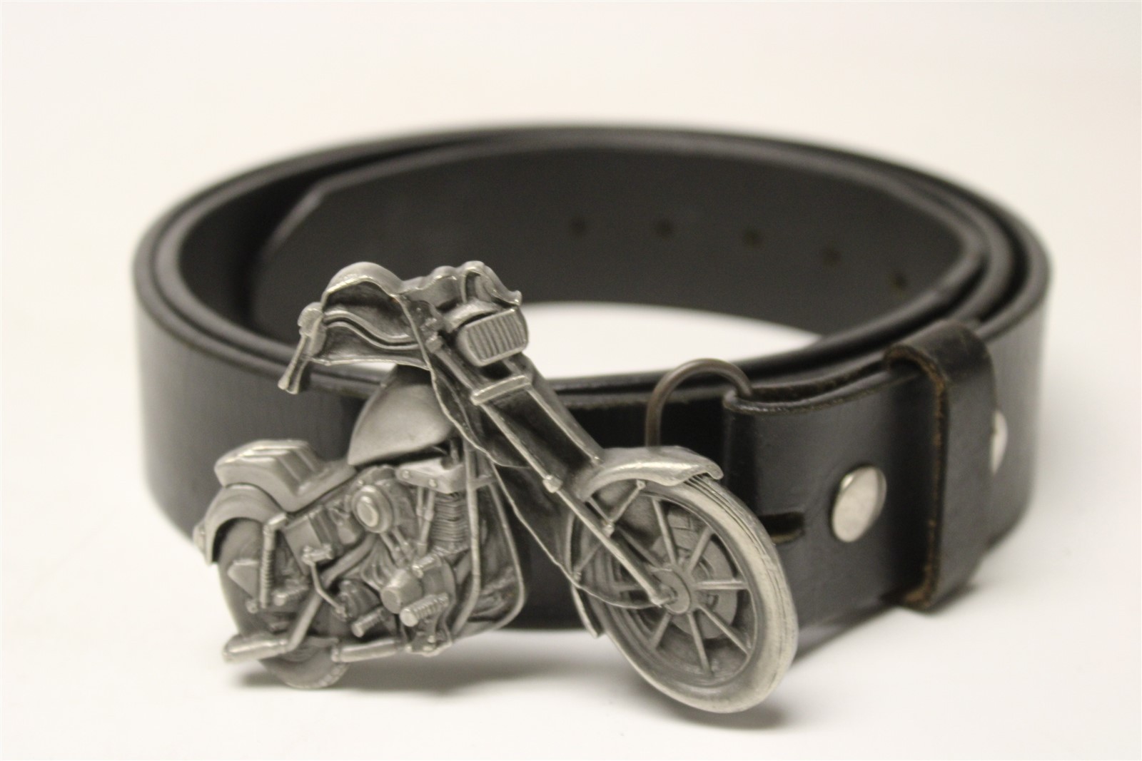 Bergamot Brass Works 1979 USA Made Motorcycle Belt Buckle 42-44 Leather Belt