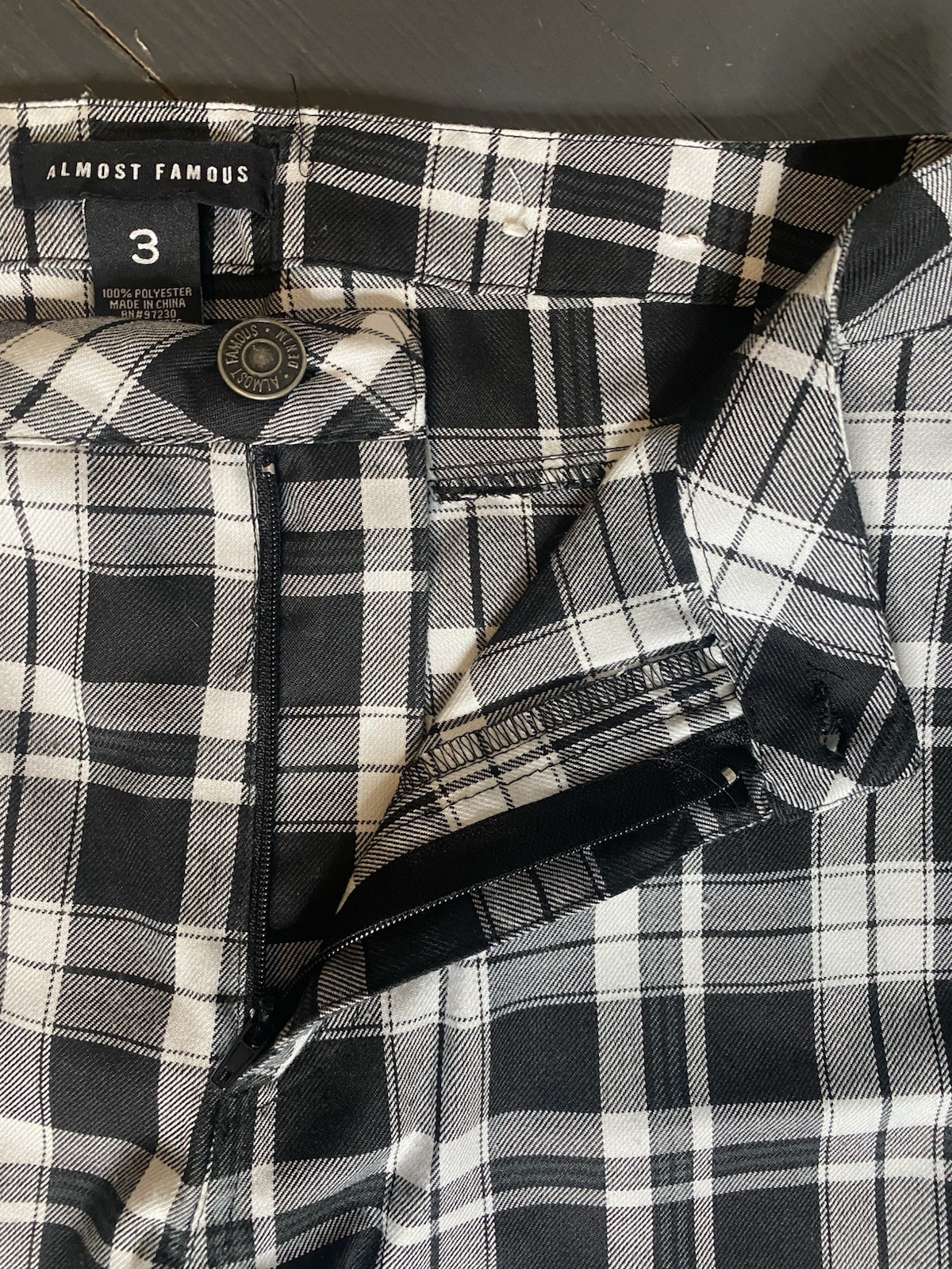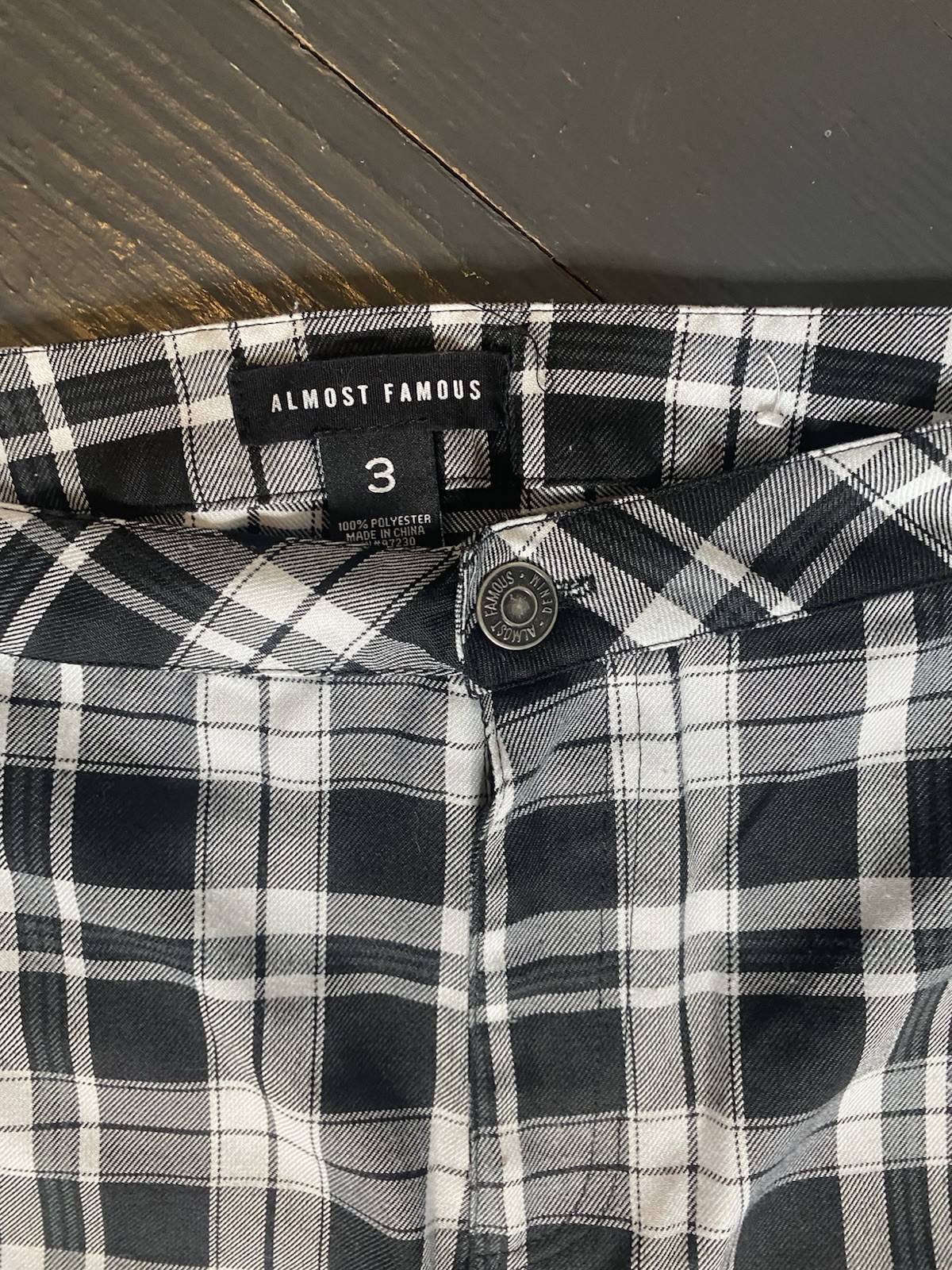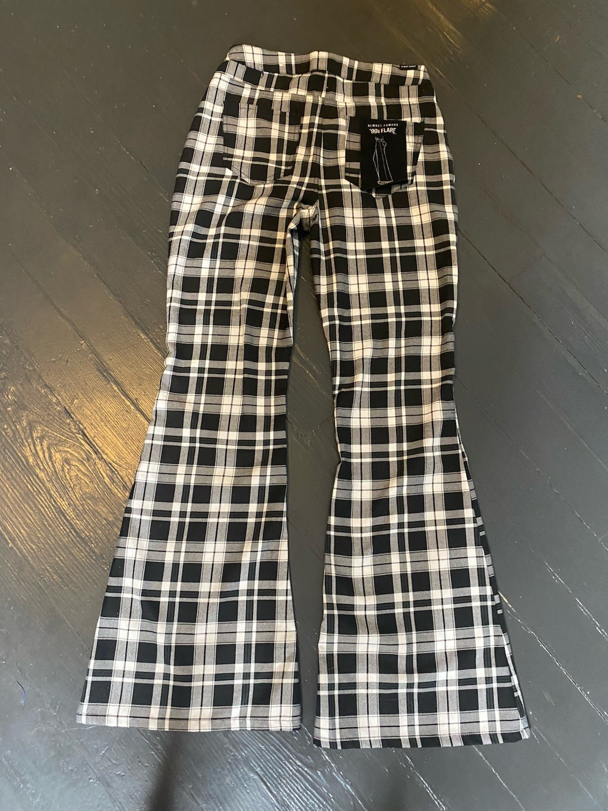 как выглядит Almost Famous High Rise Plaid Flare Pants Sz 3 фото