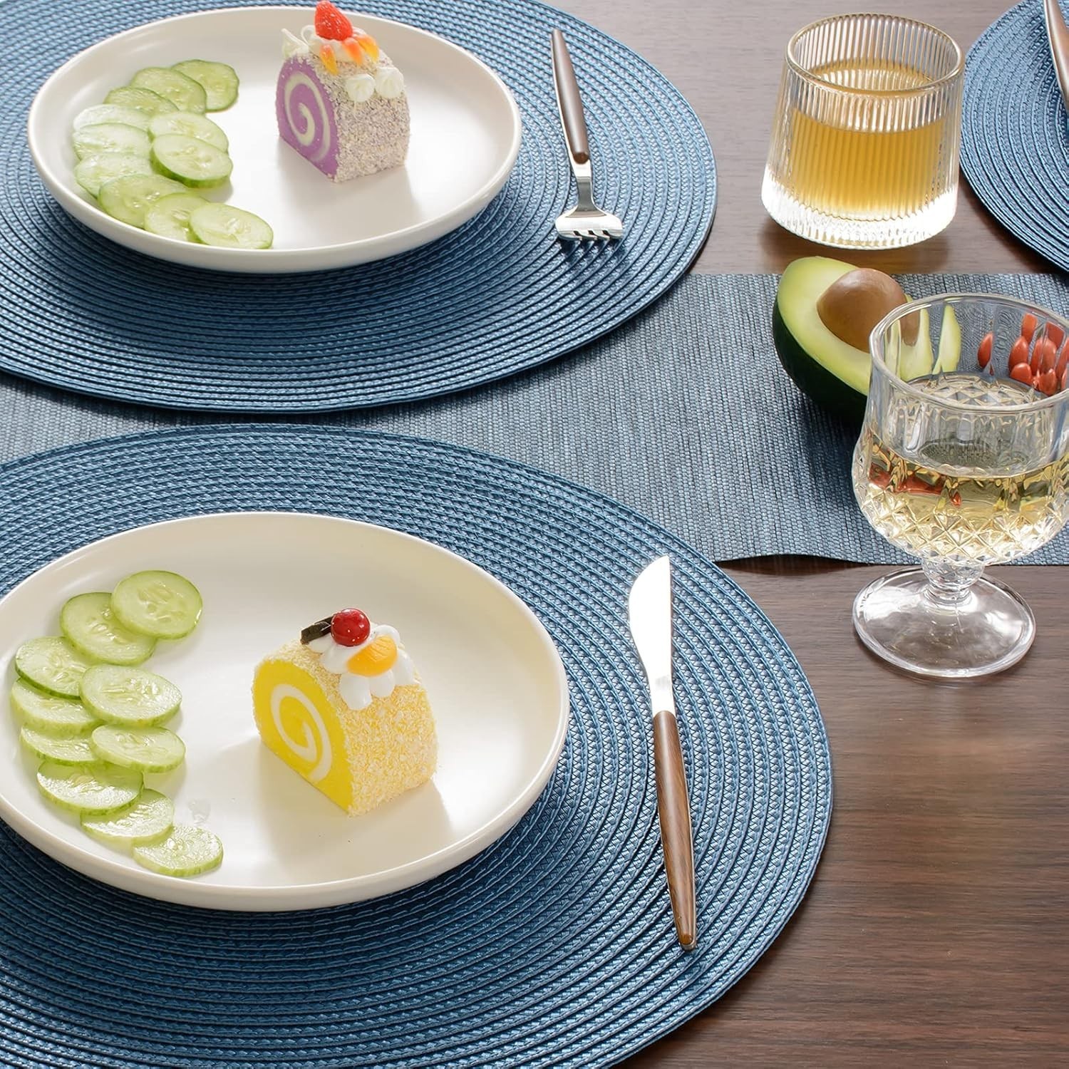 Round Braided Placemats Set of 6 Table Mats for Dining Tables Woven Washable ...