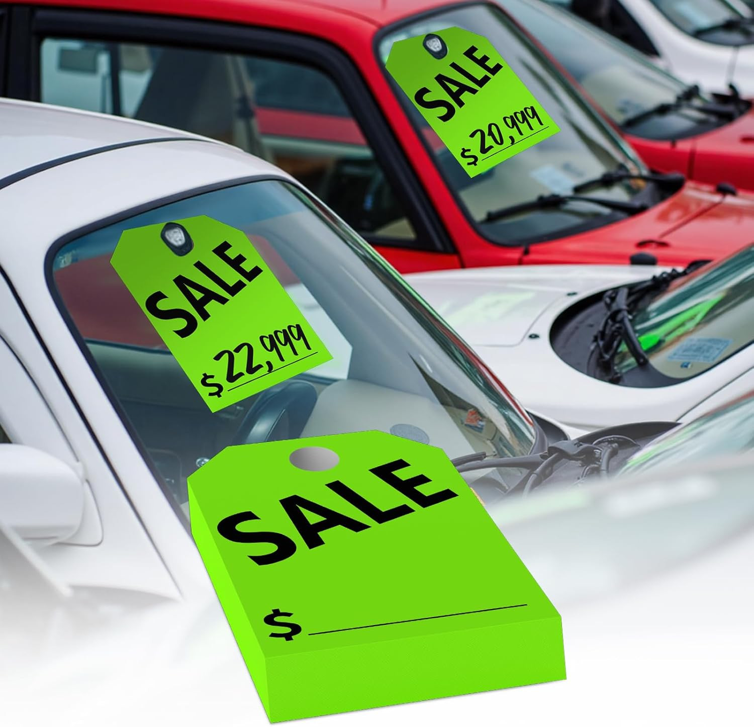 как выглядит 120 Pack Sale Tags, Green Double-Sided Hanging Car Mirror Tags, 8.3 X 11.2 In... фото