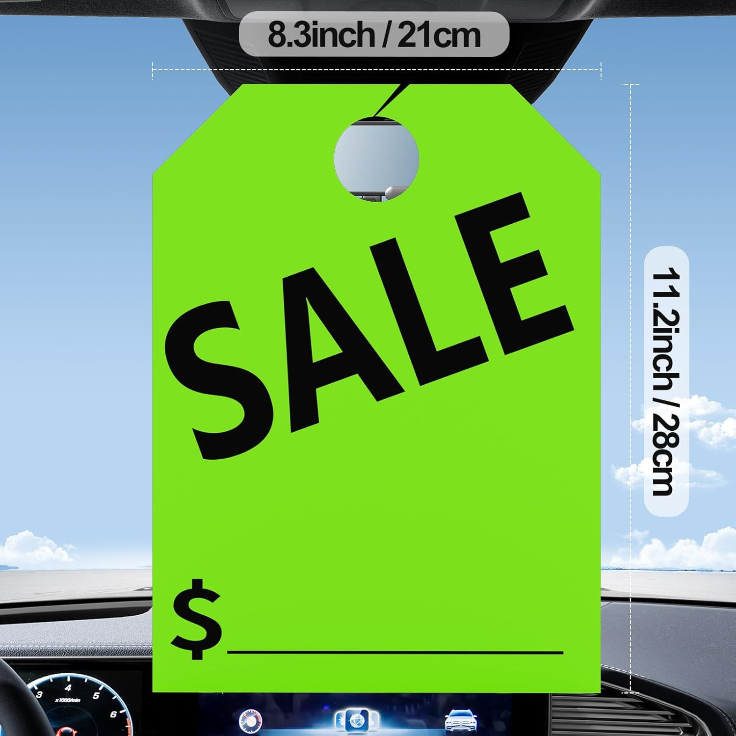 120 Pack Sale Tags, Green Double-Sided Hanging Car Mirror Tags, 8.3 X 11.2 In...
