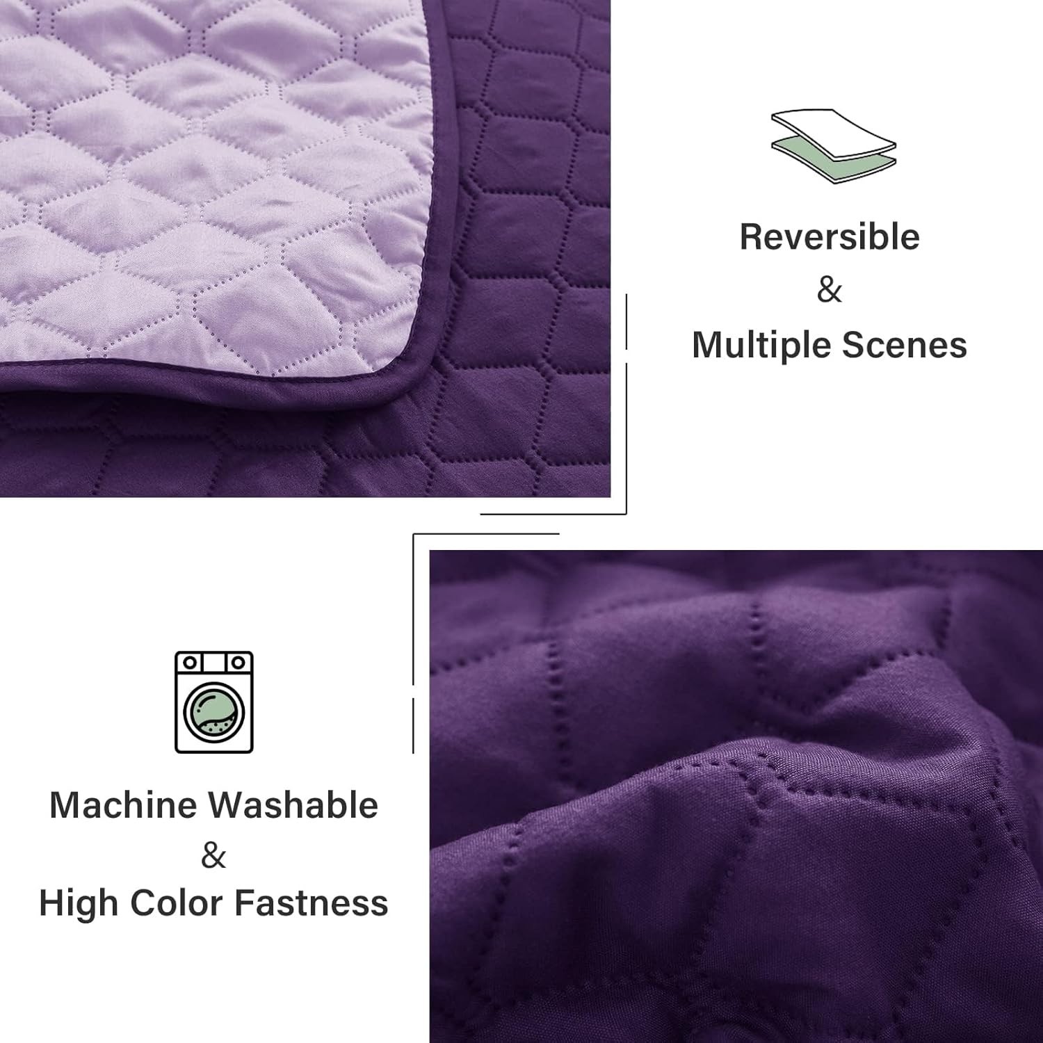 Reversible King Size Quilt Bedding Set with Pillow Shams, Lightweight Quilts ...
