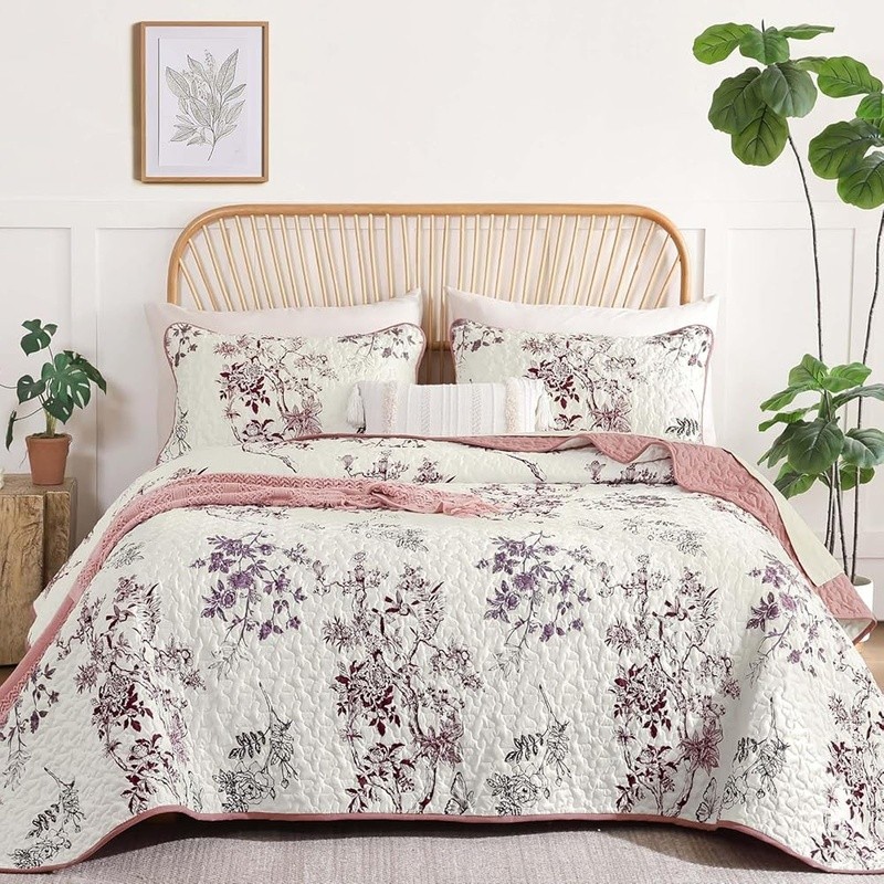 как выглядит Botanical Butterfly Quilt Set Soft Microfiber Bedding Decor 3 Pieces Bedroom New фото