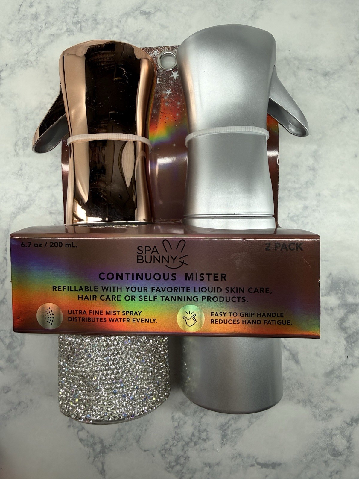 Spa Bunny Refillable Spray Bottles In Rosegold Rhinestone Matte Gray Set of 2