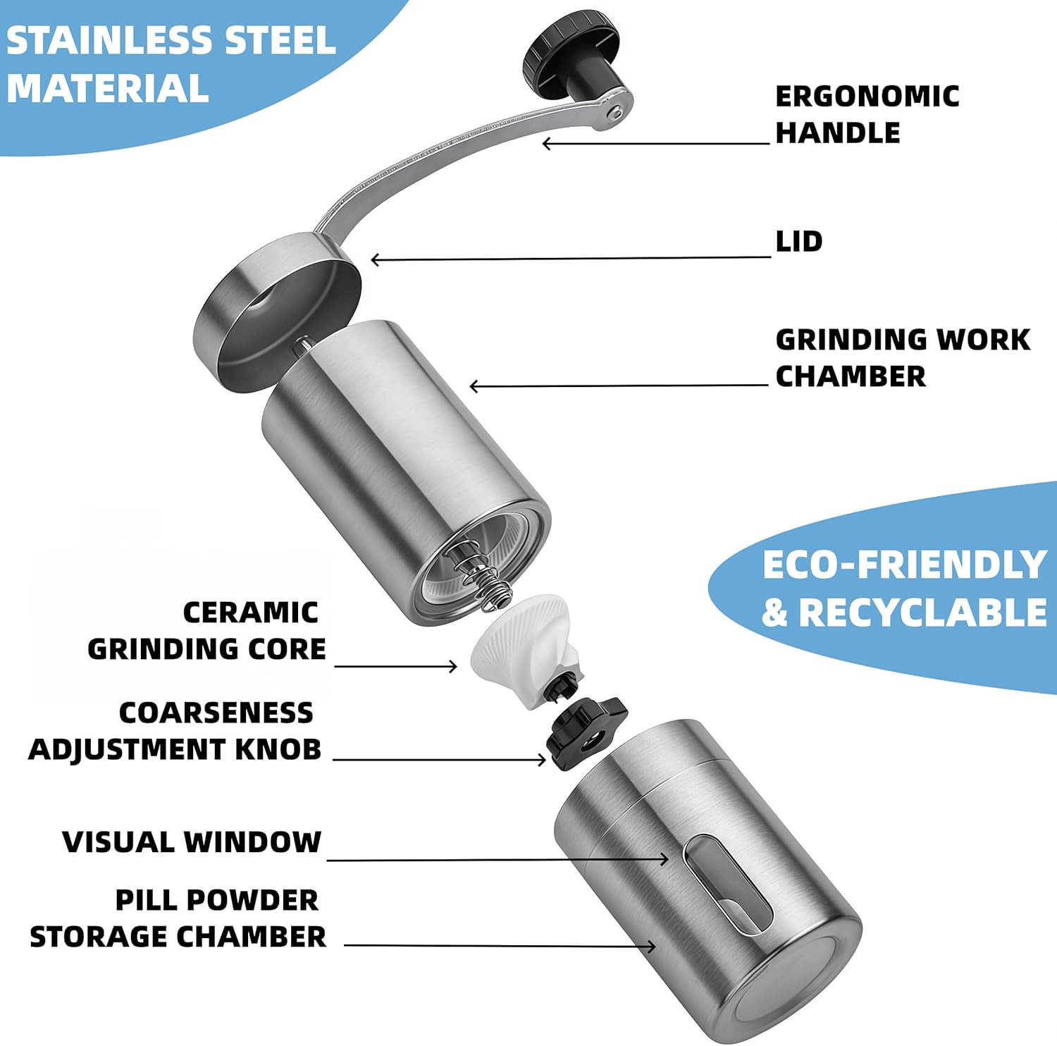 как выглядит Home Goods Pill Crusher Adjustable Grinder Stainless Steel Pill Grinder - Large фото