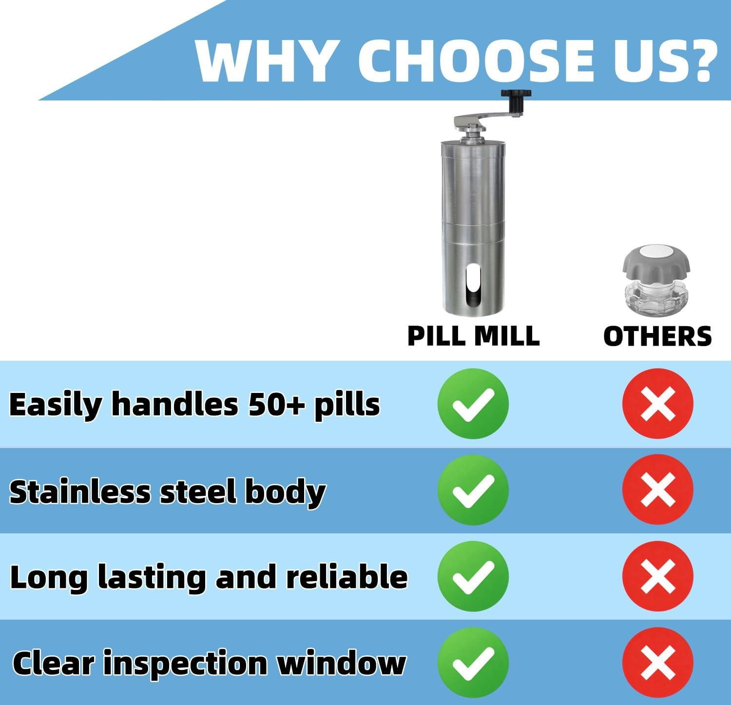 Home Goods Pill Crusher Adjustable Grinder Stainless Steel Pill Grinder - Large