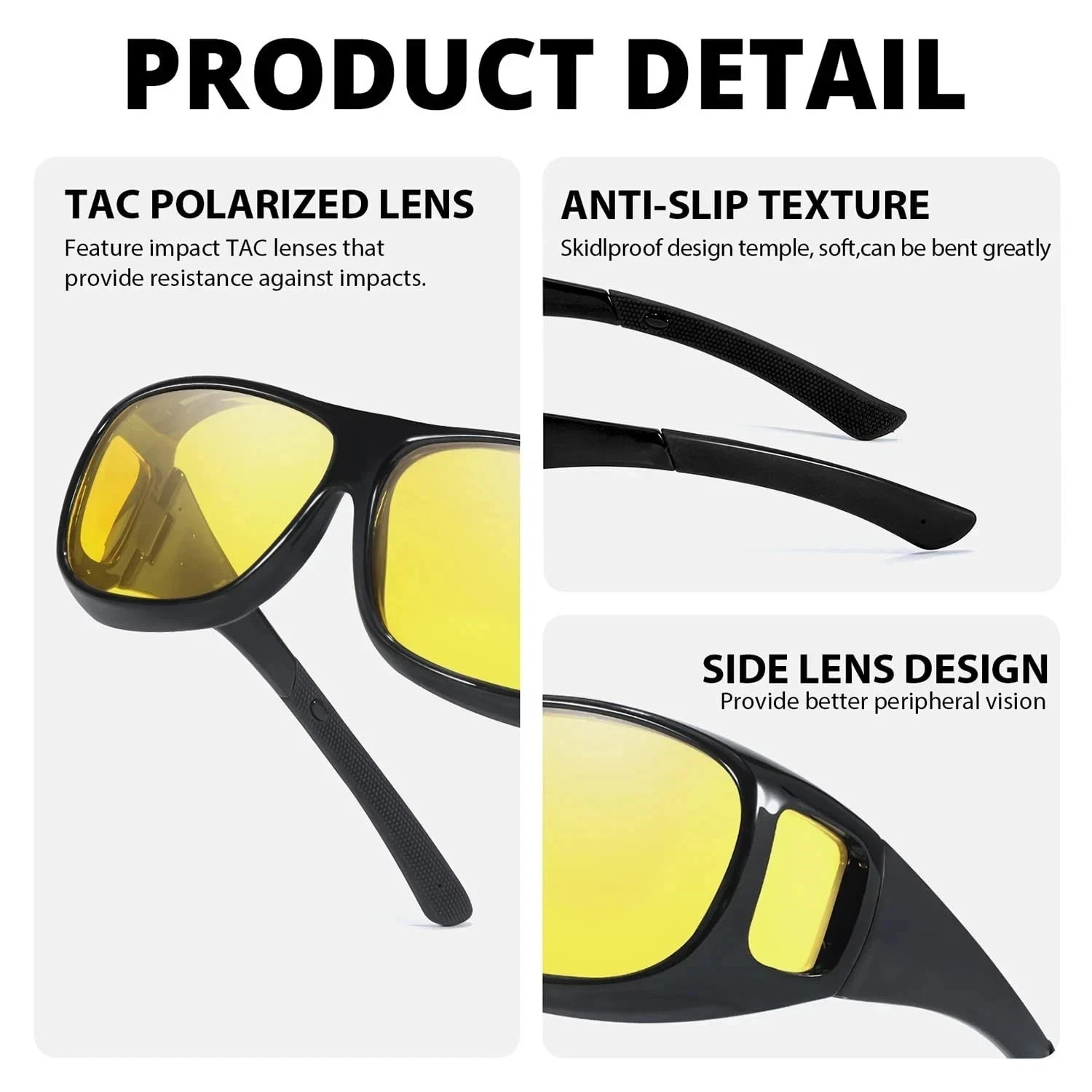 Night Vision Pro Driving Glasses Anti-Glare Polarized Wear Over Yellow Lens A