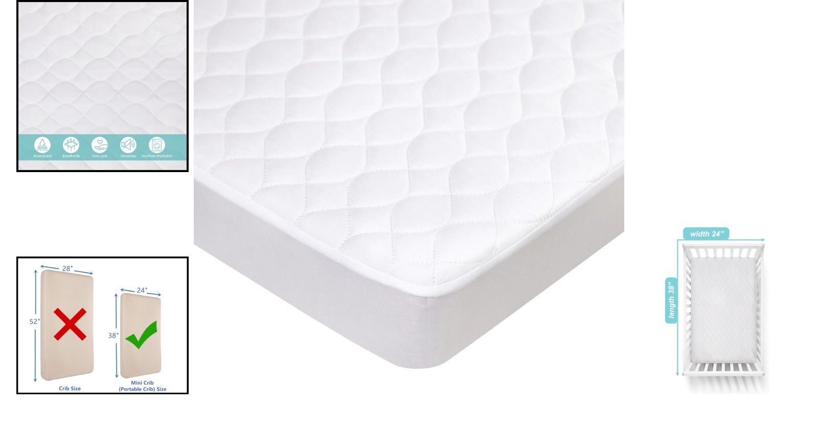 Особенности: Waterproof, Breathable, Noiseless, Ultra-Soft, Machine Washable, Durable, Quilted, Easy Care