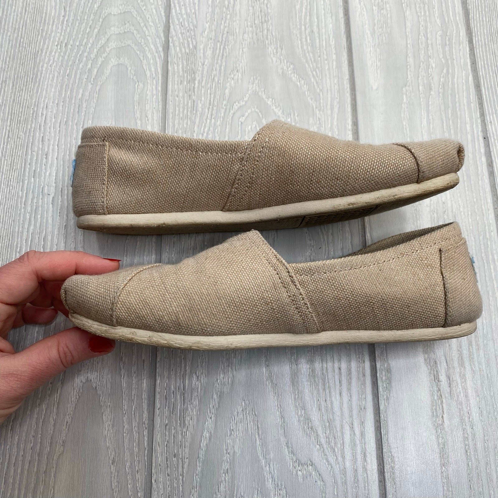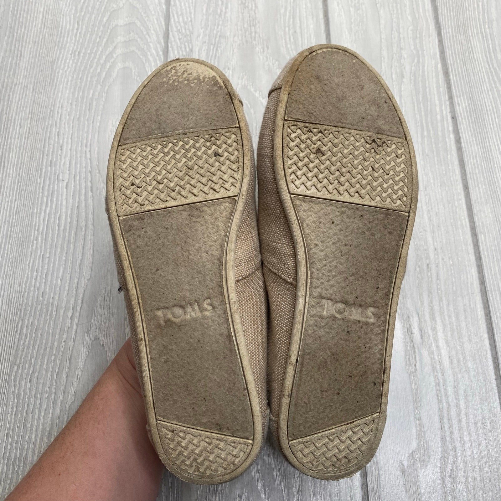 Toms Women's Tan Metallic Canvas Slip-On Alpargata Flats Size 8