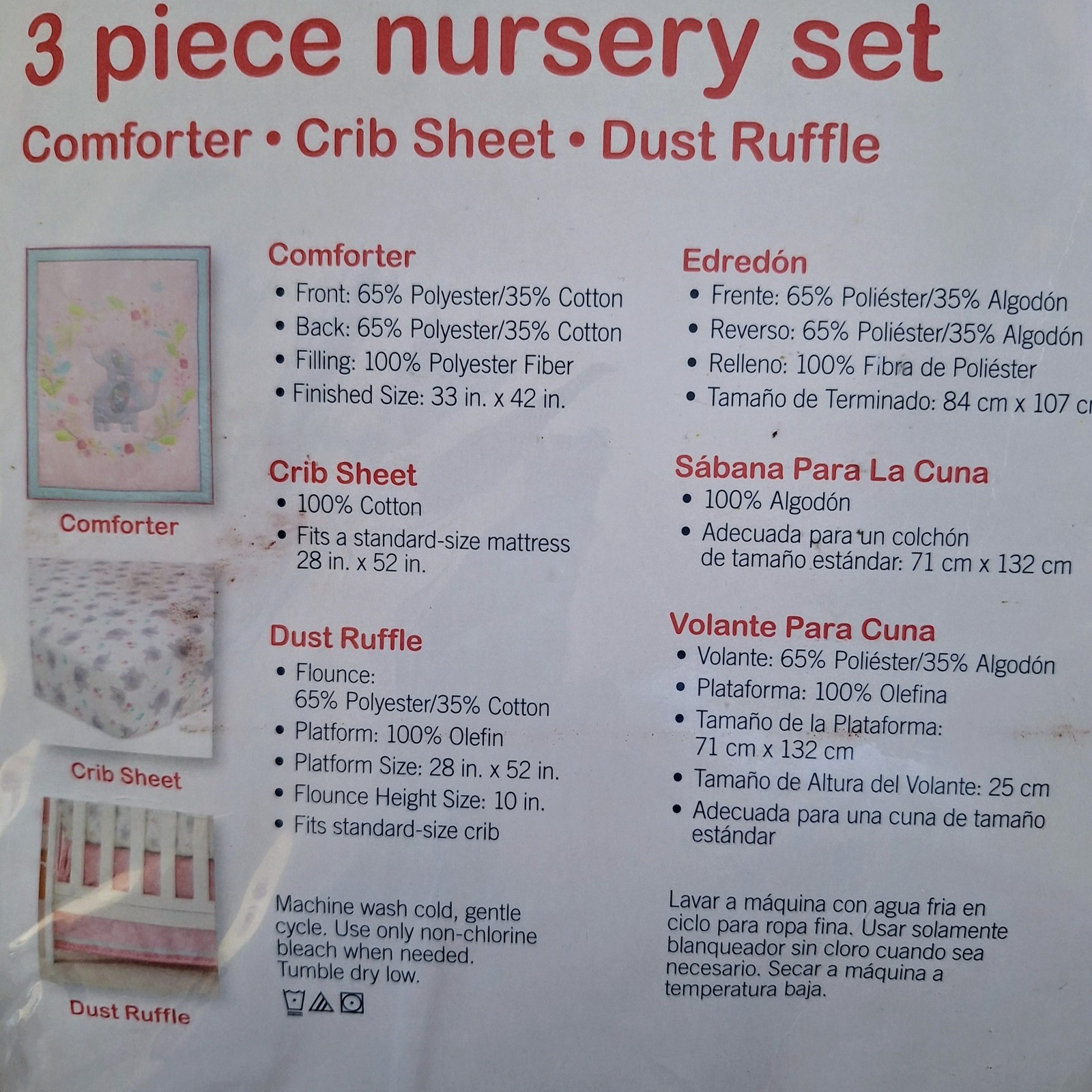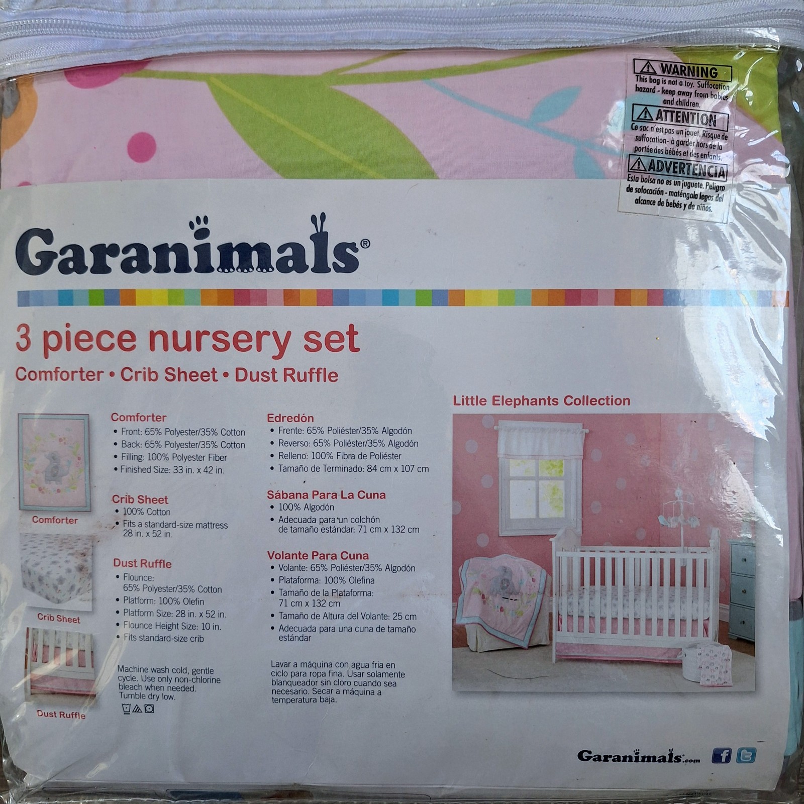 Garanimals 3 Piece Nursery Set Little Elephants Pink Girl Comforter Sheet Ruffle