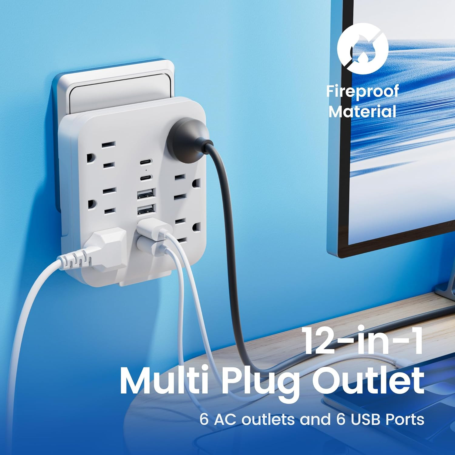 Wall Outlet Extender 6 AC 6 USB 2 USB-C Power Strip Fast Charging