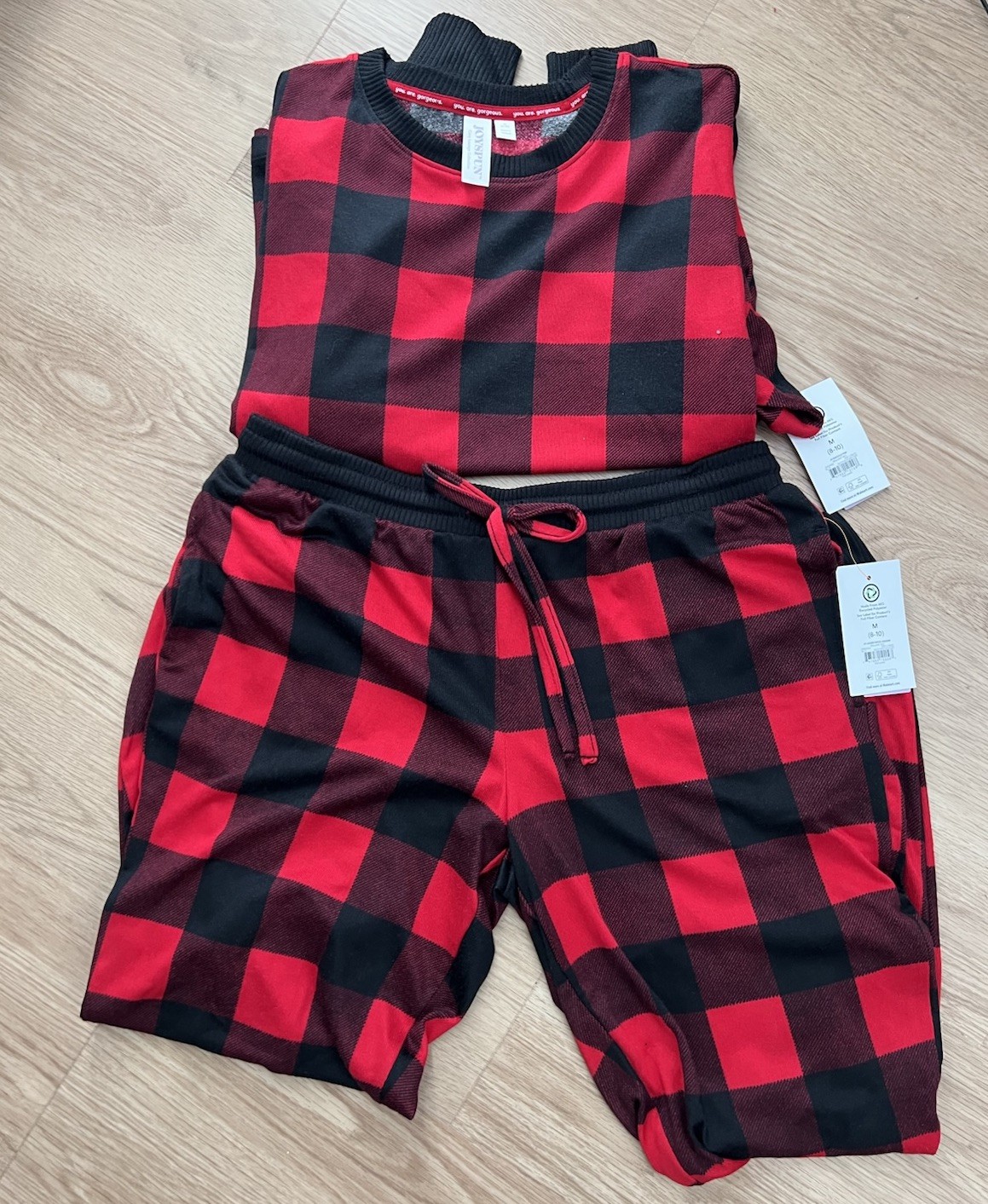 как выглядит Red and Black Plaid Pajama Set Long Sleeve Pants Two Piece Set фото