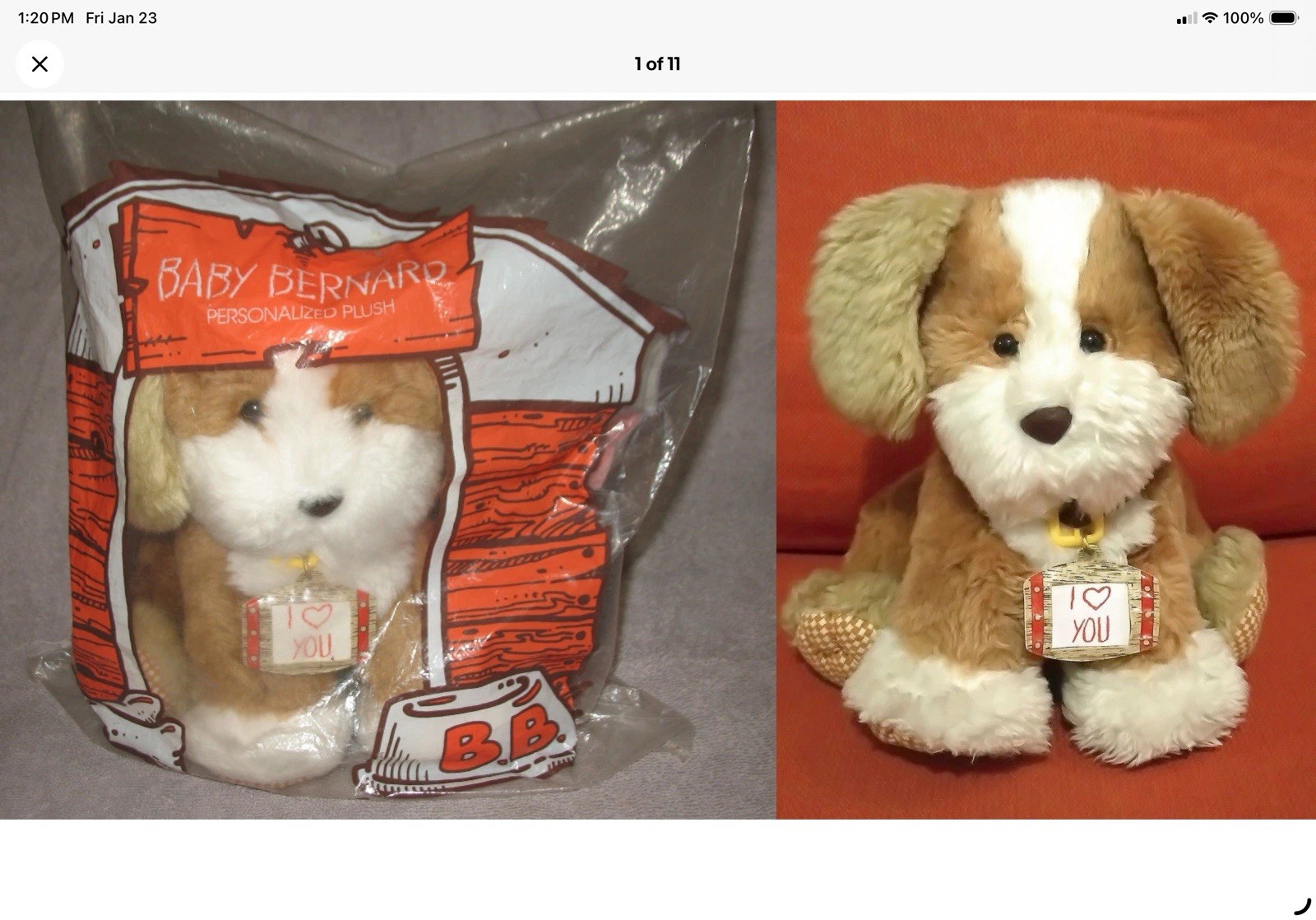 Baby Bernard 1990 Persoalized Plushies Factory Sealed Brand New