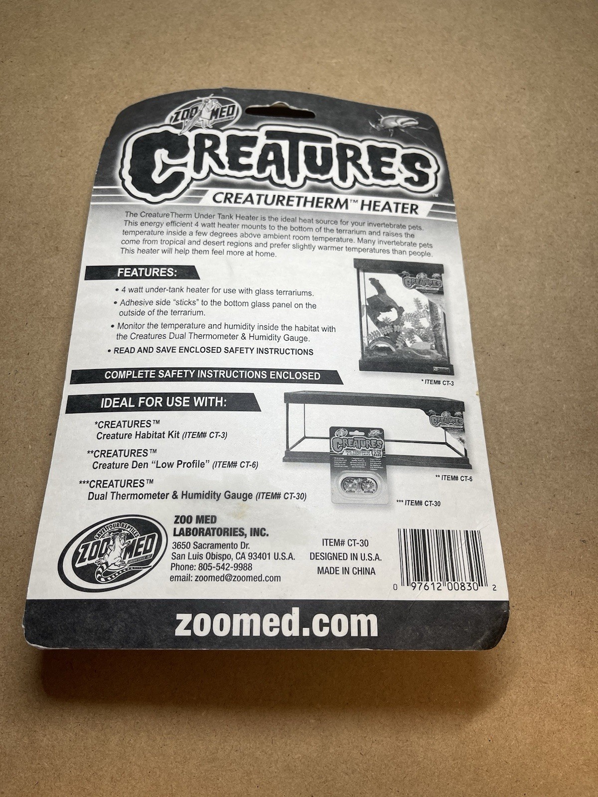 Zoo Med Creatures CreatureTherm Tank Heater 4 Watt CT-30 New Invertebrate
