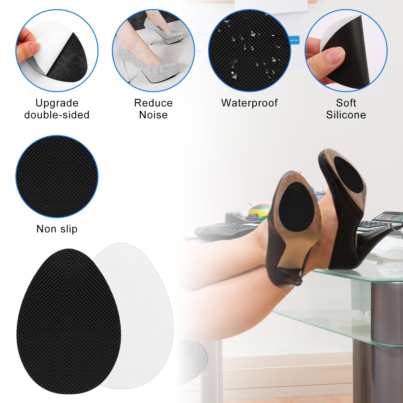 16 PCS/8 Pairs Non-Slip Shoe Pads for Bottom of Shoes Self-Adhesive Black