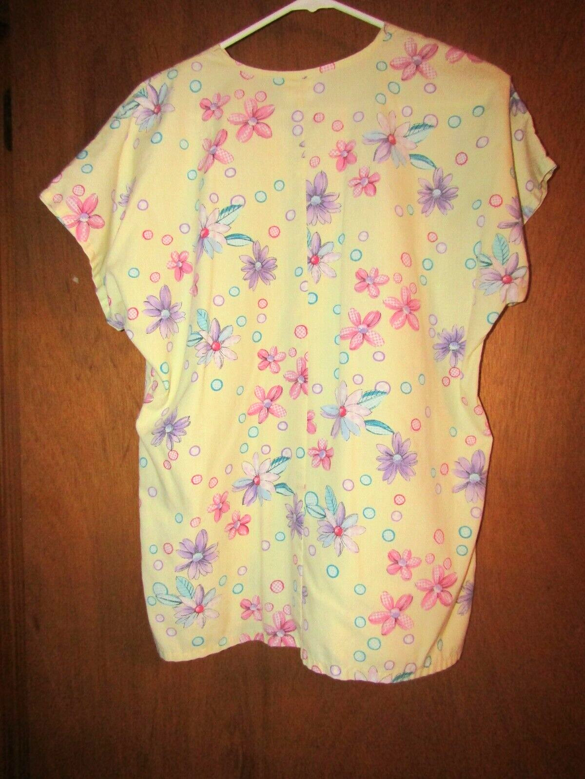 Women's Size Small V-Neck Scrubs Top/Shirt Uniform Yellow with Flowers