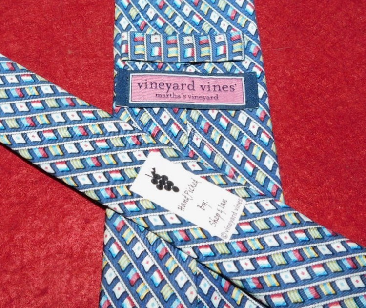 VINEYARD VINES MADE IN U.S.A. BLUE/RED/WHITE FLAGS MOTIF TIE - DESIGNER TIES.