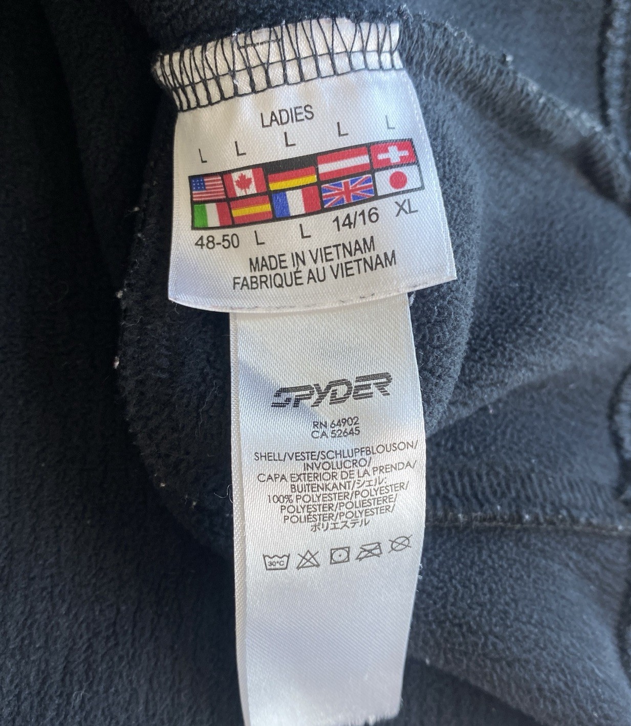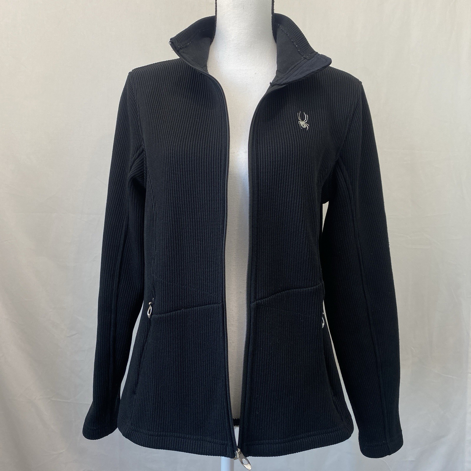 как выглядит Spyder Core Sweater Black Zip Up Jacket size Large Silver Zips Embroidered Logo фото