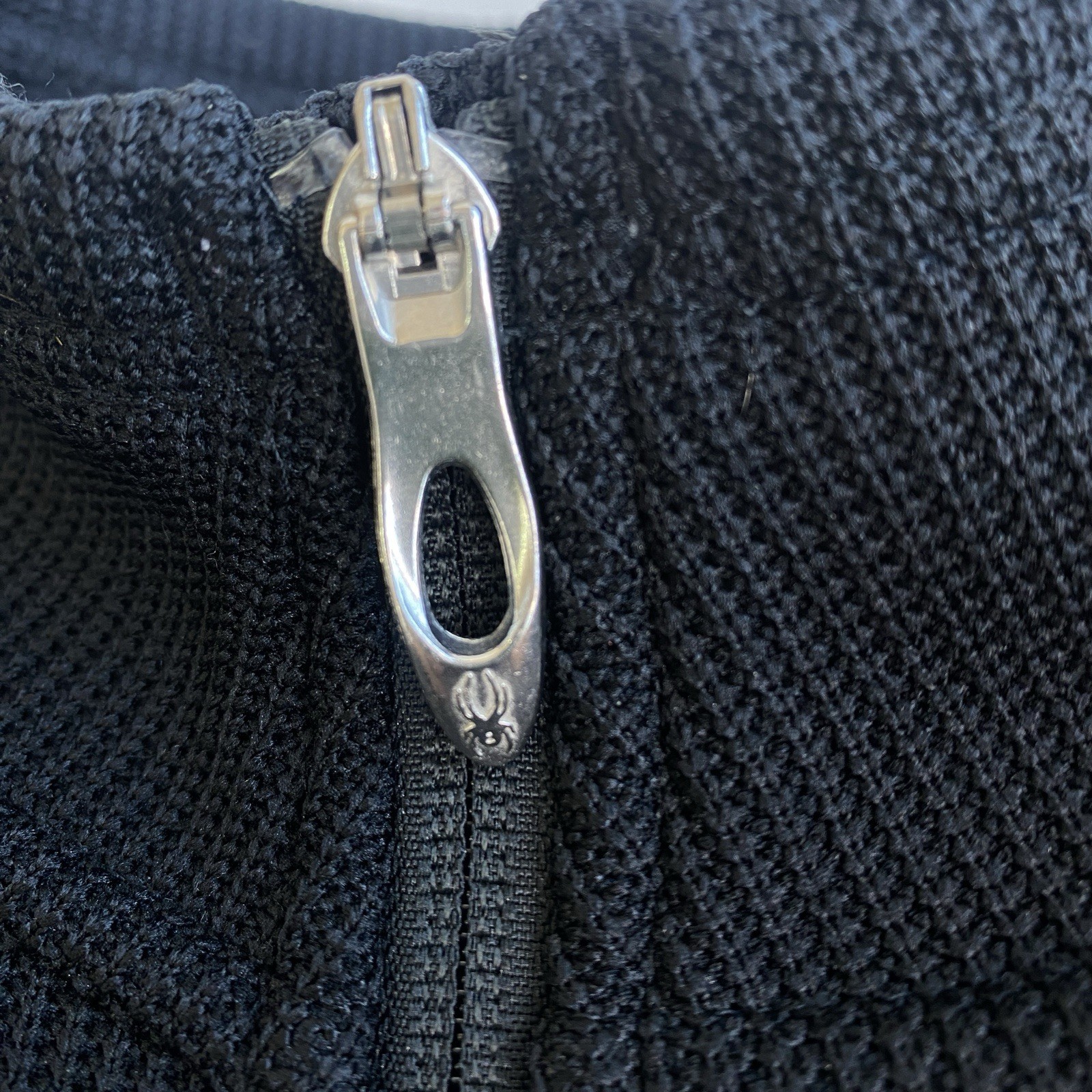 Spyder Core Sweater Black Zip Up Jacket size Large Silver Zips Embroidered Logo