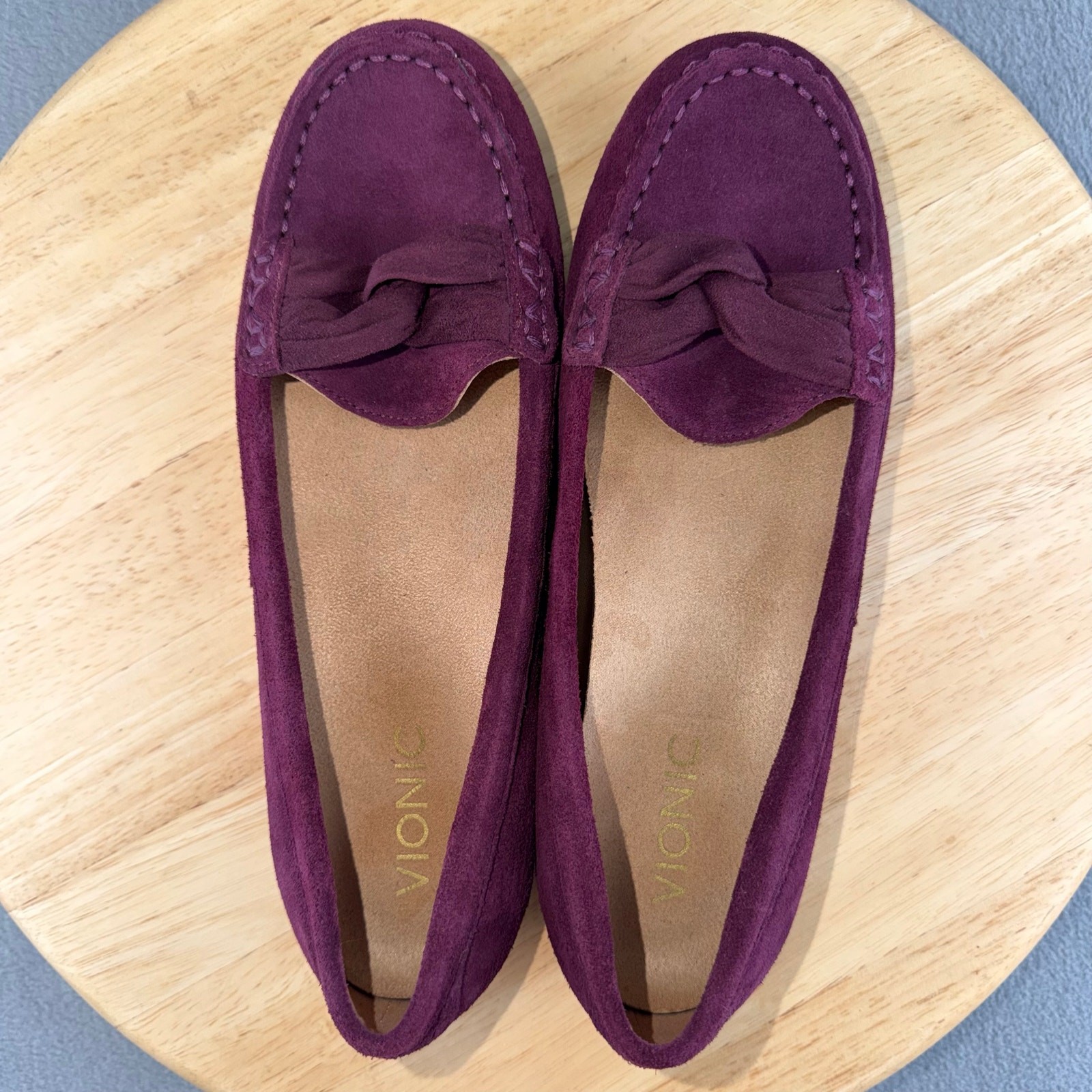 Vionic Norah Suede Moccasin Loafer Burgundy Slip-On Women s Size 8 US