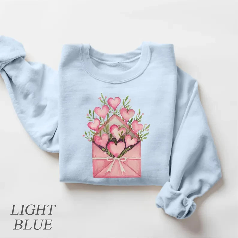 Pink Valentine Heart Graphic Sweatshirt, Cozy Relaxed Fit Pullover