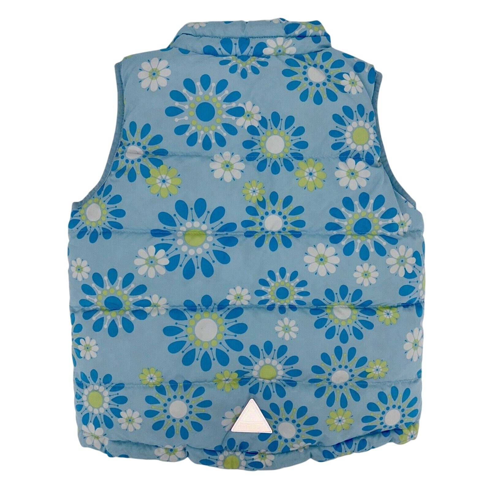 LL Bean Girl's Goose Down Reversible Puffer Vest Large 6X/7 Blue Floral Solid