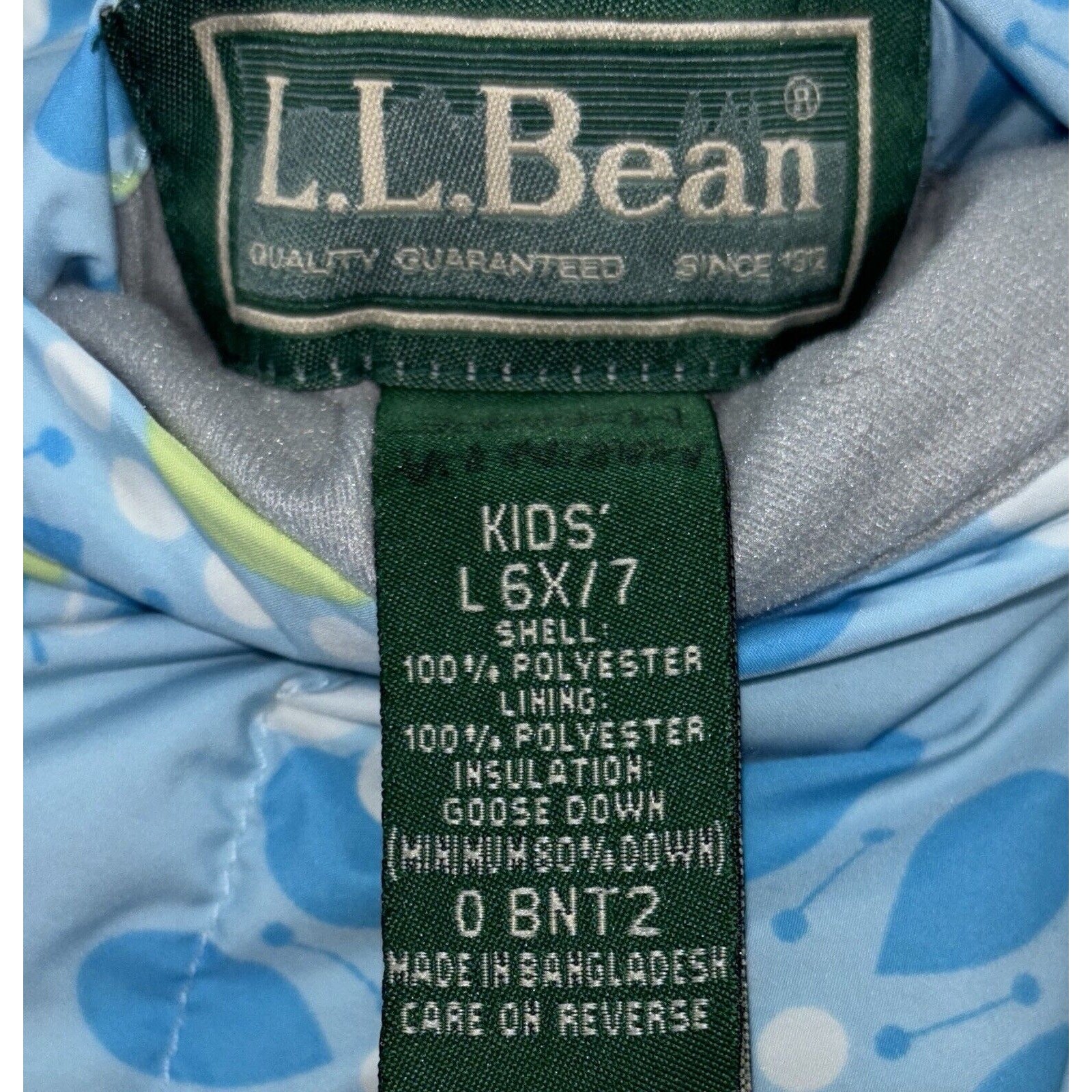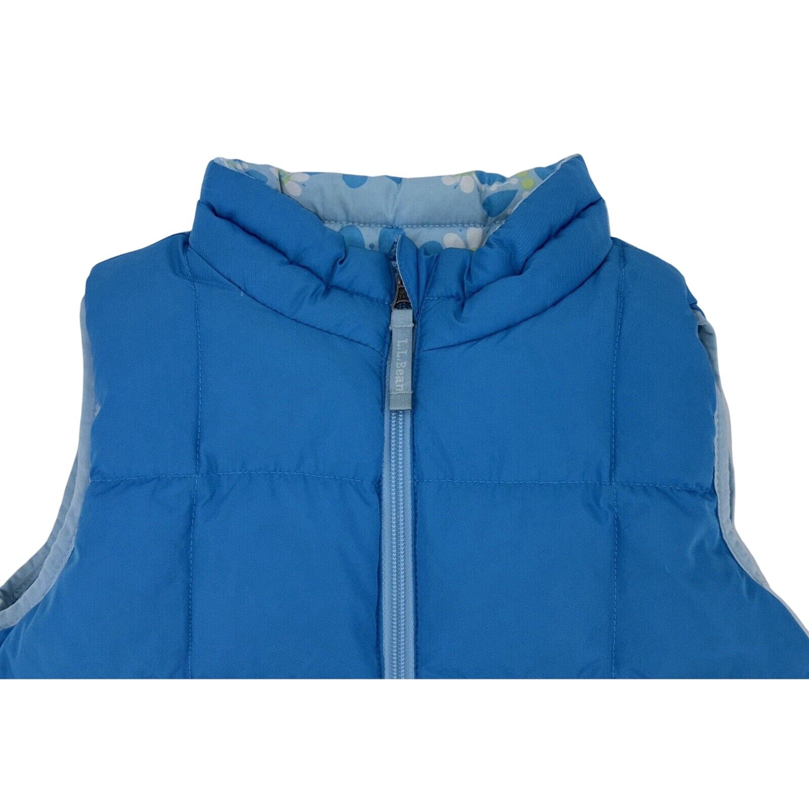 как выглядит LL Bean Girls Goose Down Reversible Puffer Vest Large 6X/7 Blue Floral Solid фото