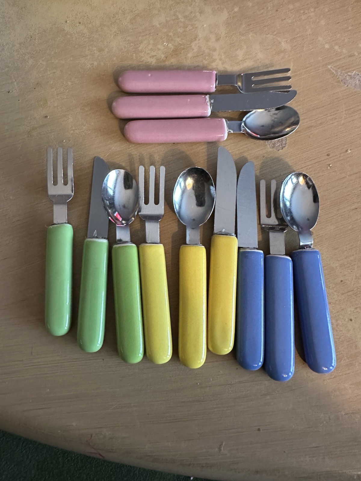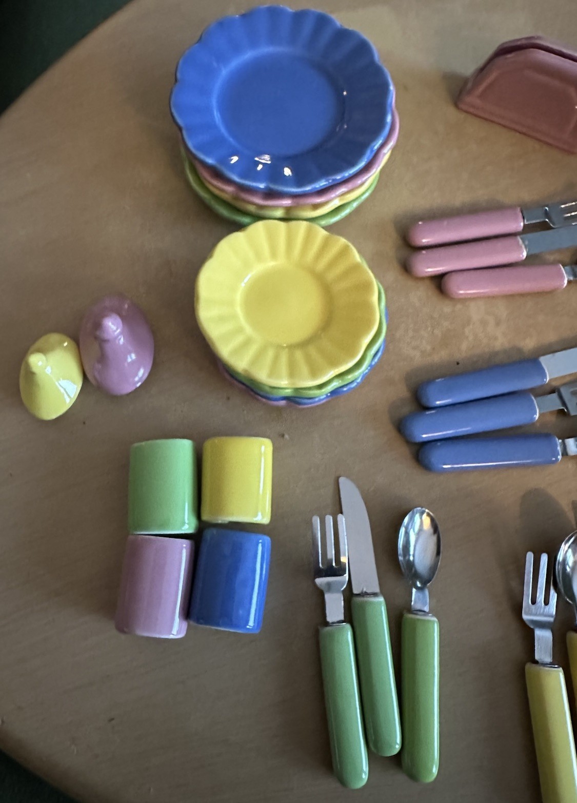 как выглядит Vintage 33 FRENZY TOYS Pastel Fiesta Colors Ceramic Childs Tea Set фото