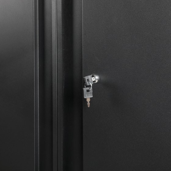 как выглядит 48-Inch Heavy-Duty Black Metal Garage Storage Cabinet with 3 Adjustable Shelves фото