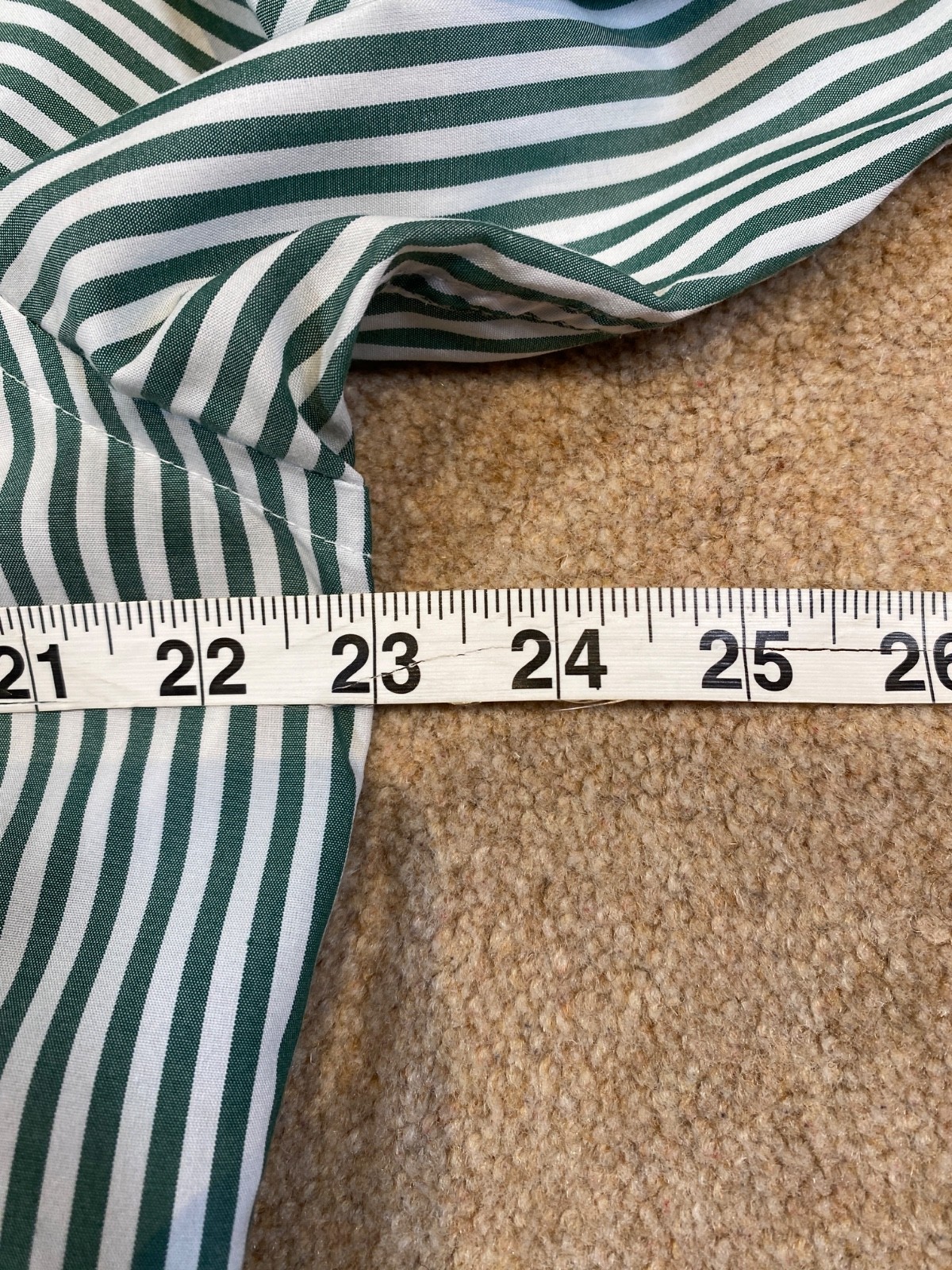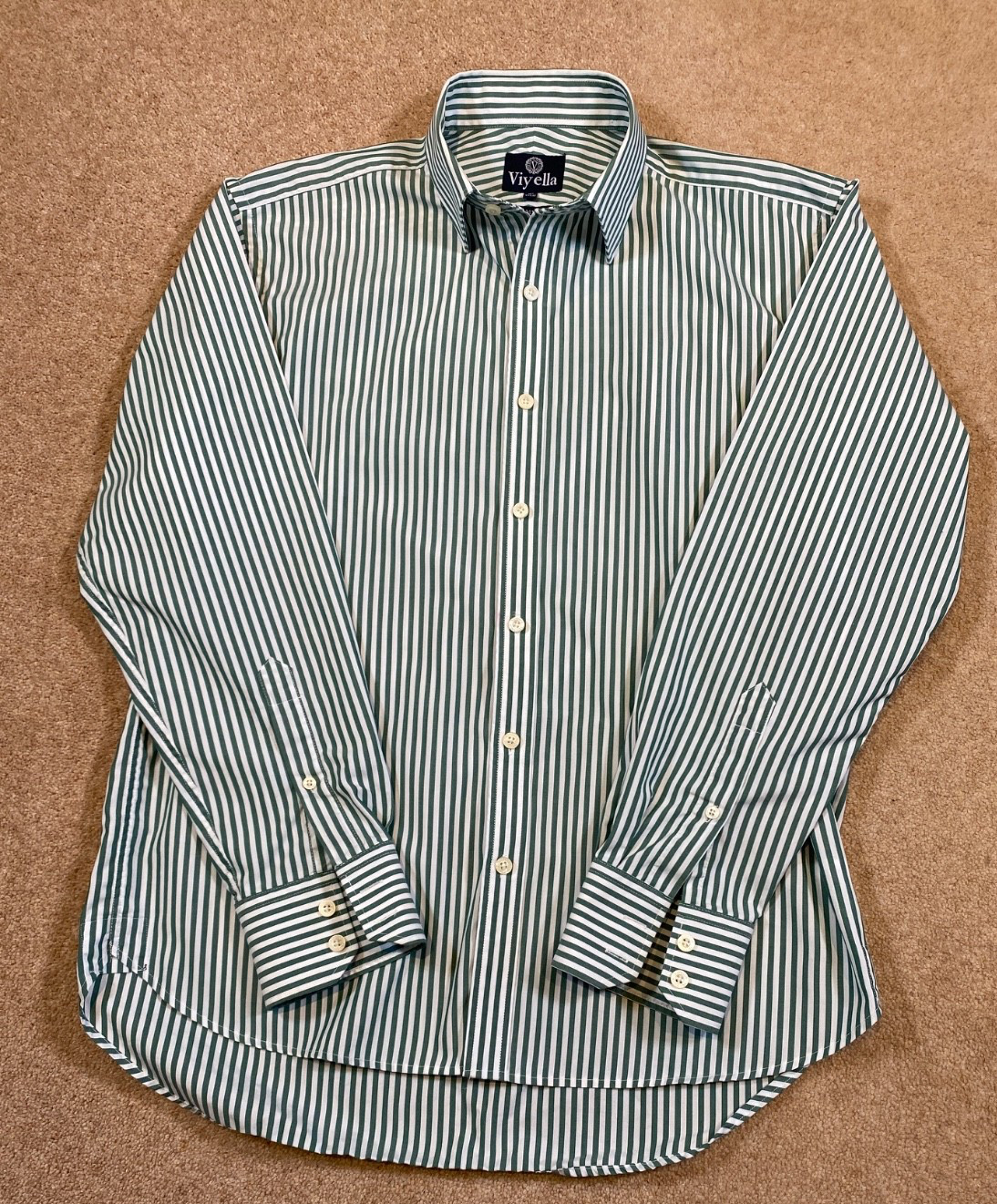 как выглядит VIYELLA COUNTRY GREEN BENGAL STIPE BUTTON CUFF SHIRT 16 фото