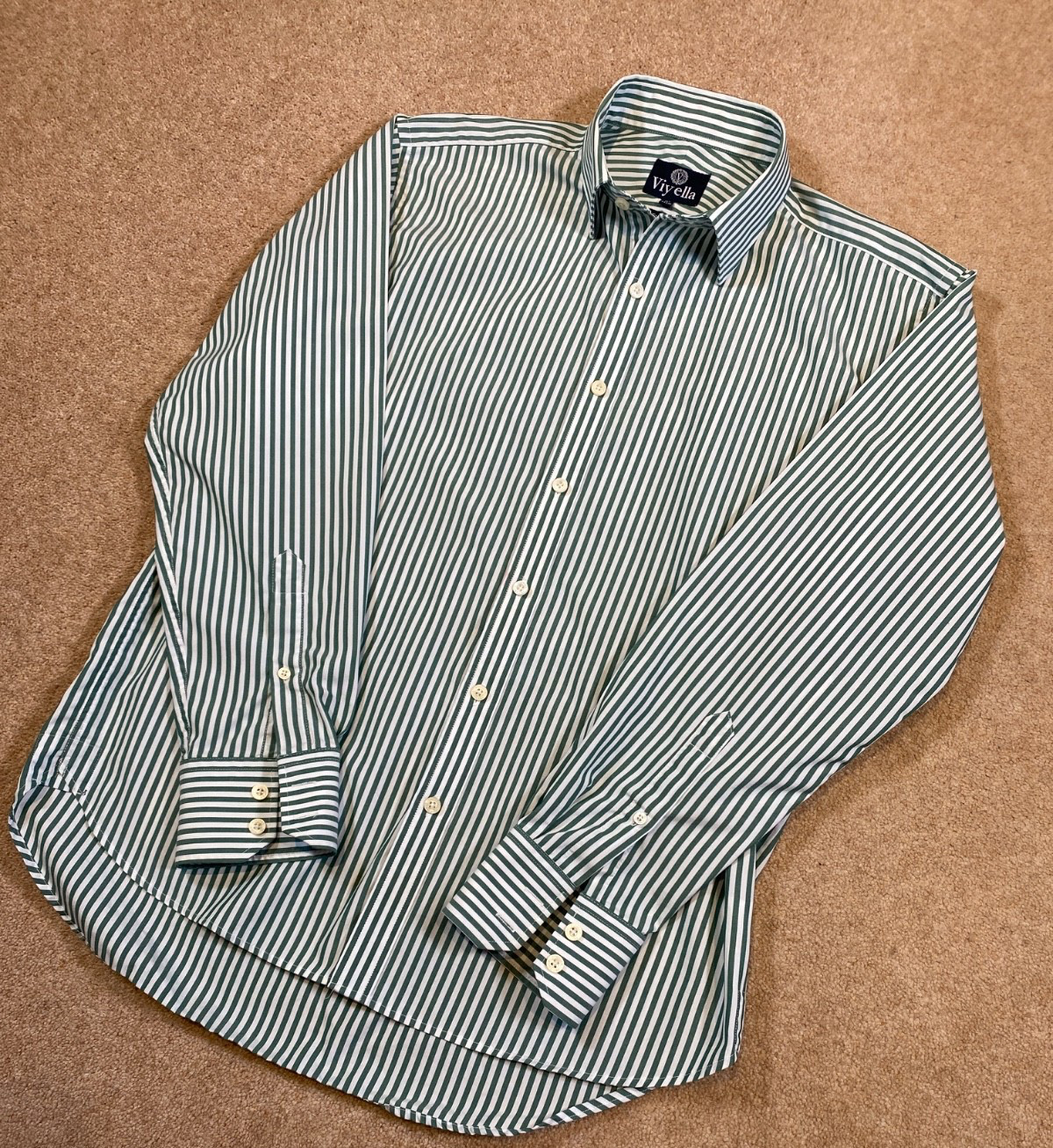 VIYELLA COUNTRY GREEN BENGAL STIPE BUTTON CUFF SHIRT 16
