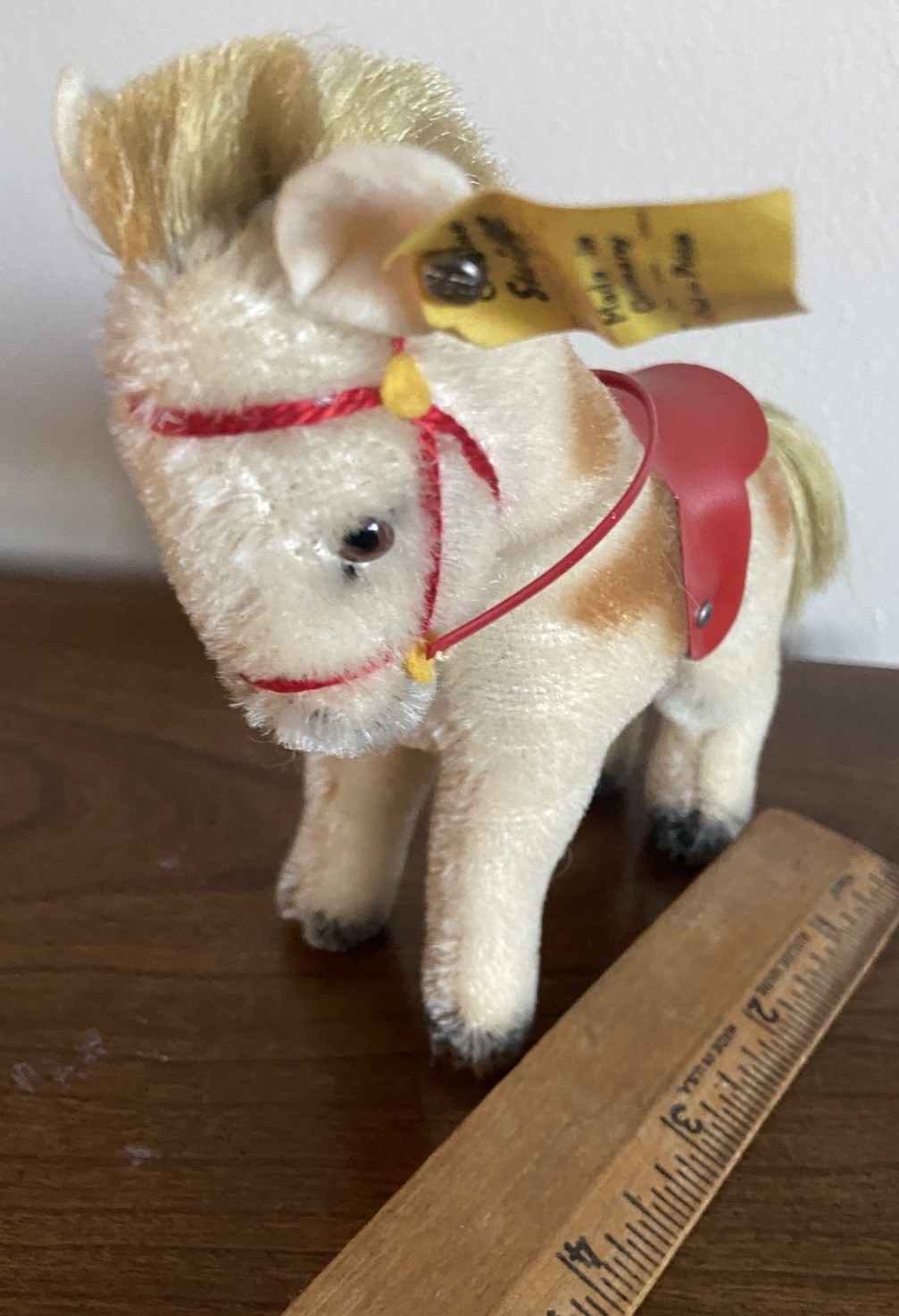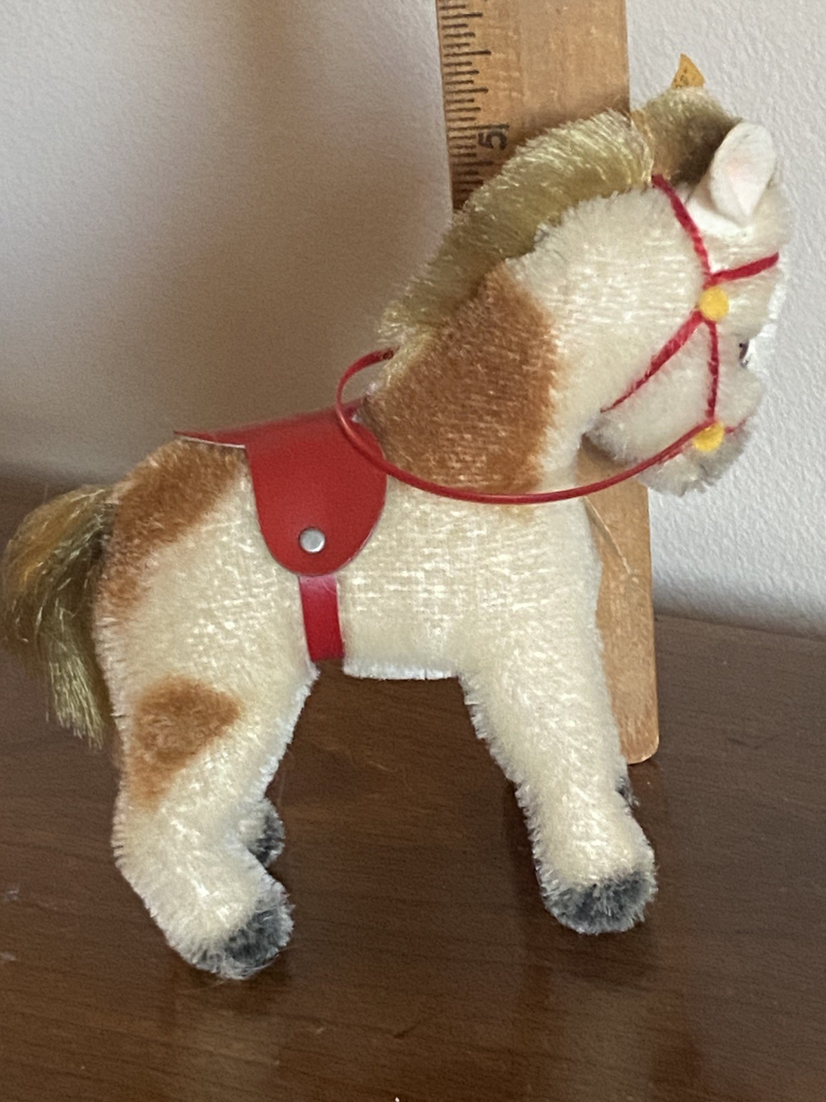 как выглядит Rare VTG Steiff pinto pony horse mohair ALL IDs bridle saddle excellent LOOK фото