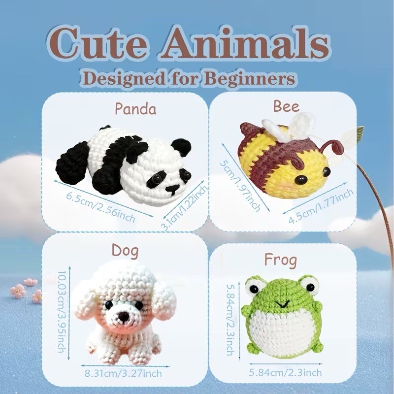 Beginner Crochet Starter Kit 8PCS w/ Animal Patterns, Yarn, Hooks Video Guide