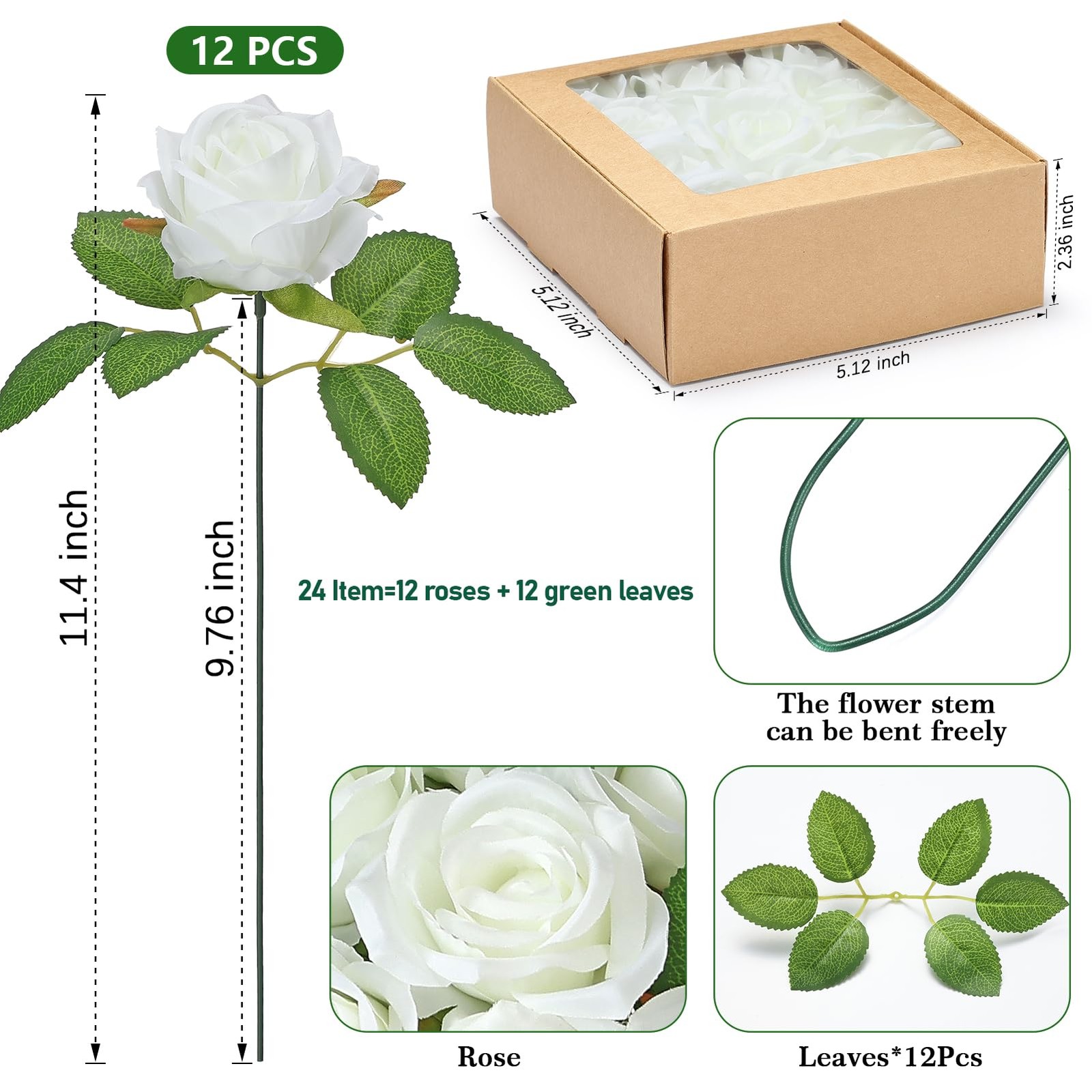 Artificial Flowers 24 Item Silk with Stems Realistic White