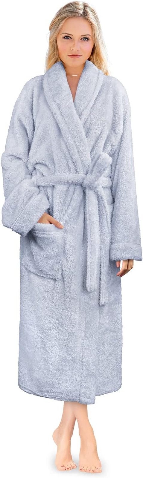 как выглядит Premium Womens Plush Soft Robe Fluffy, Warm, Fleece Sherpa Shaggy Bathrobe фото