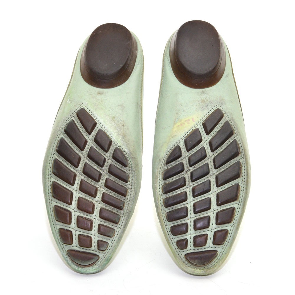 как выглядит Ladies Salvatore Ferragamo Arema Gancini Pin Mules 6 B Green Leather Slip Shoes фото