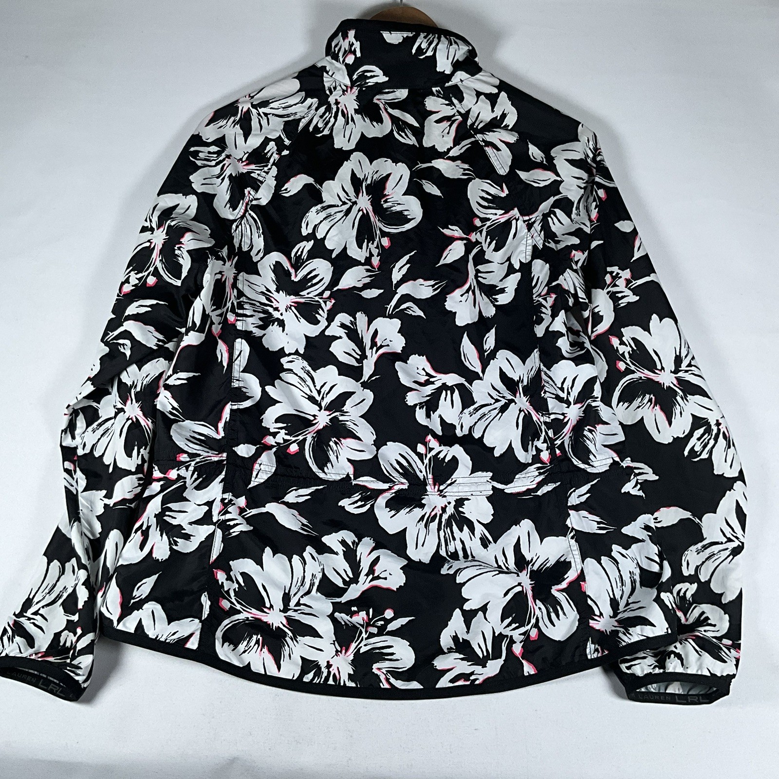 Ralph Lauren L-RL Jacket Active Windbreaker Black White Floral Full Zip Women S