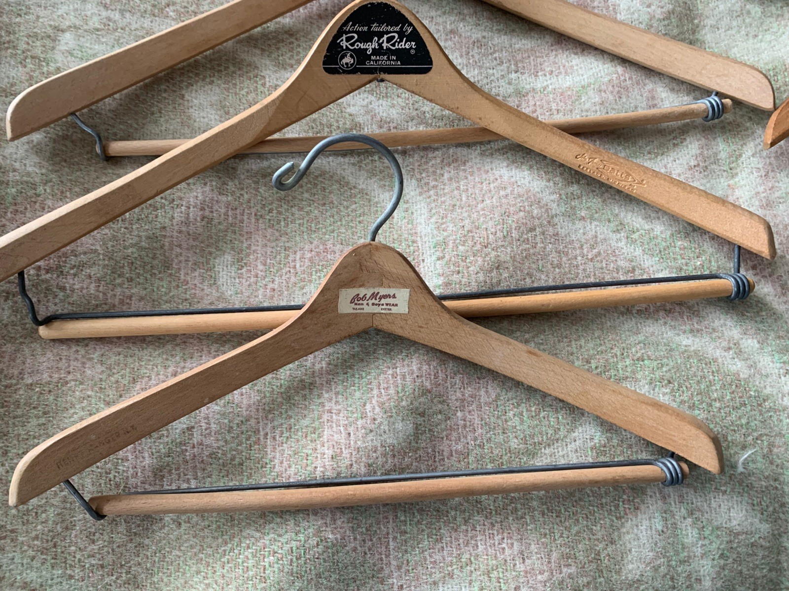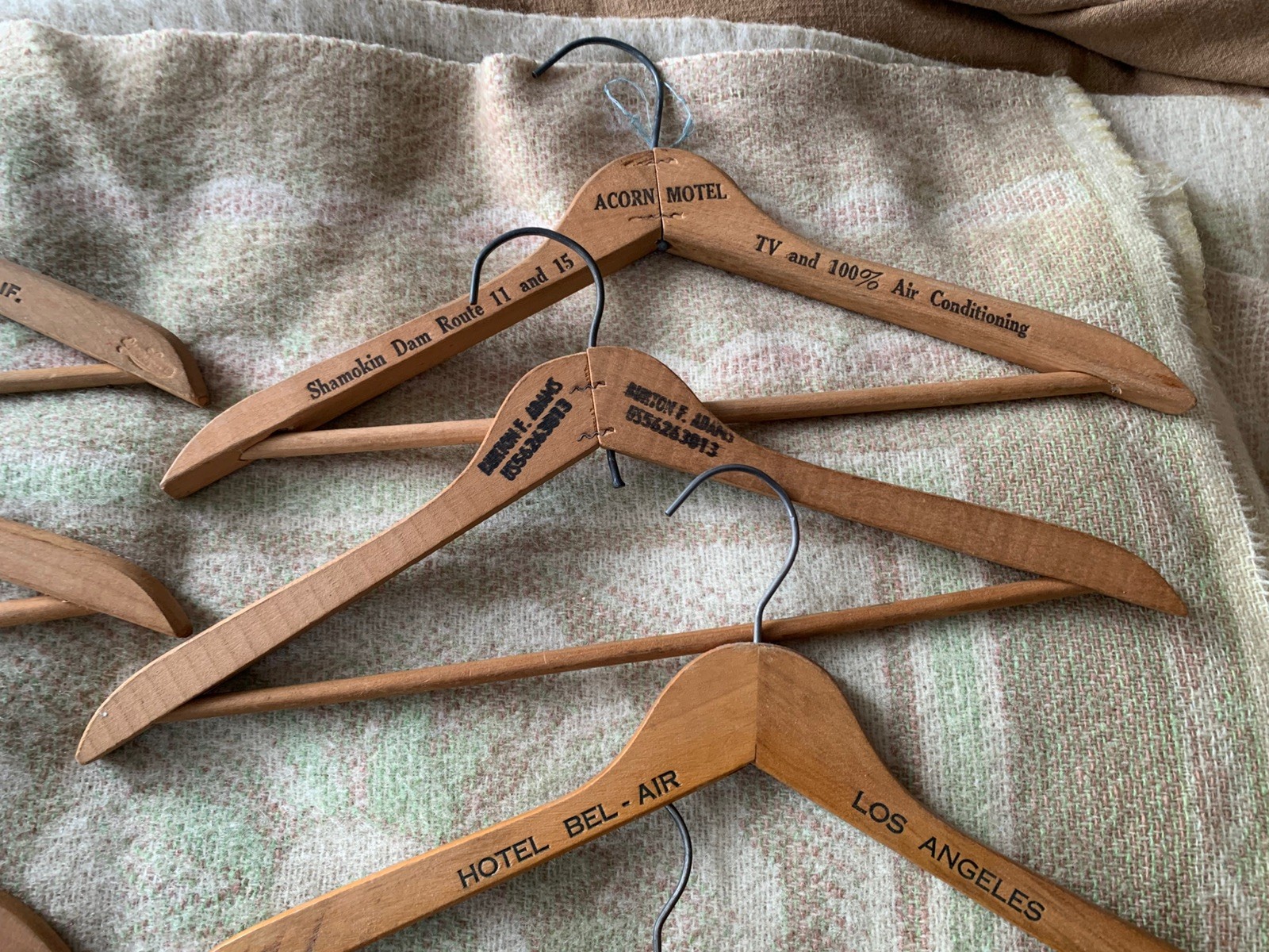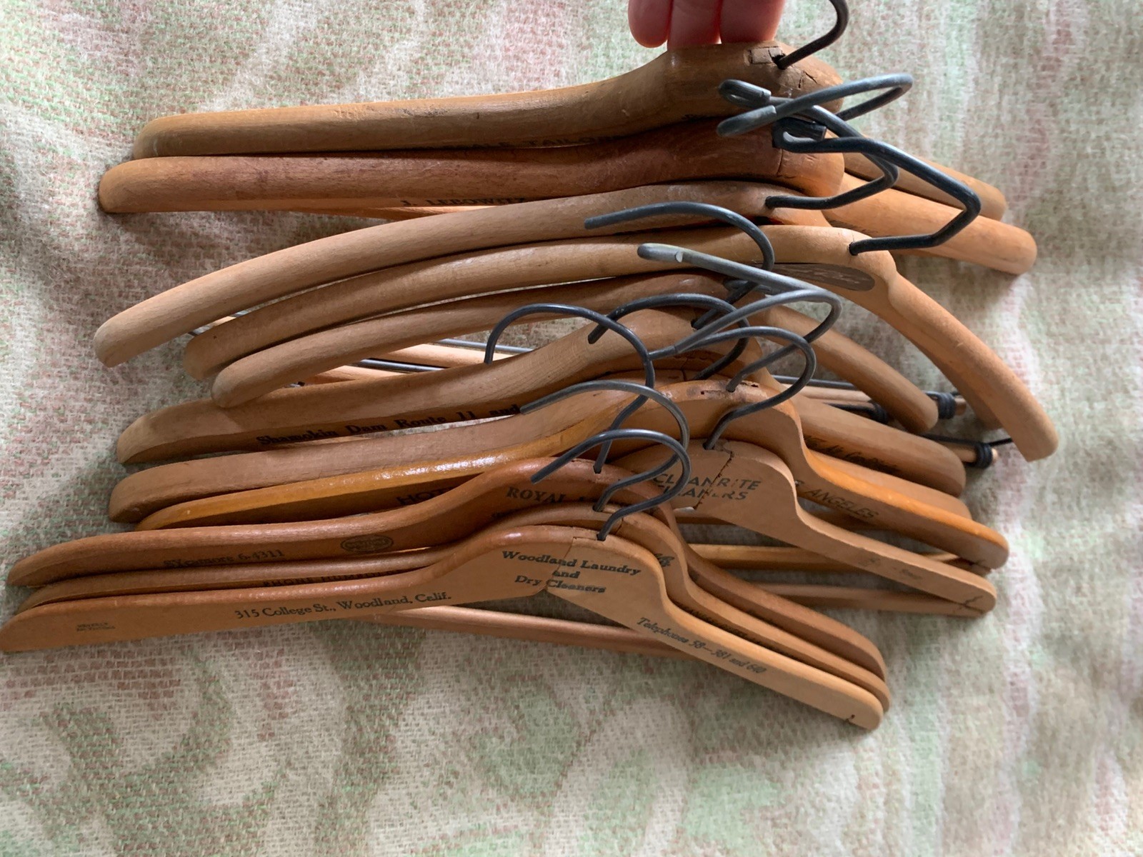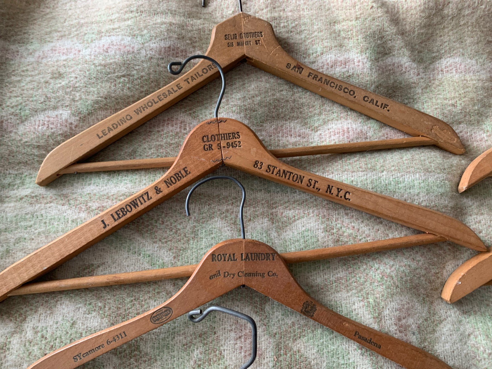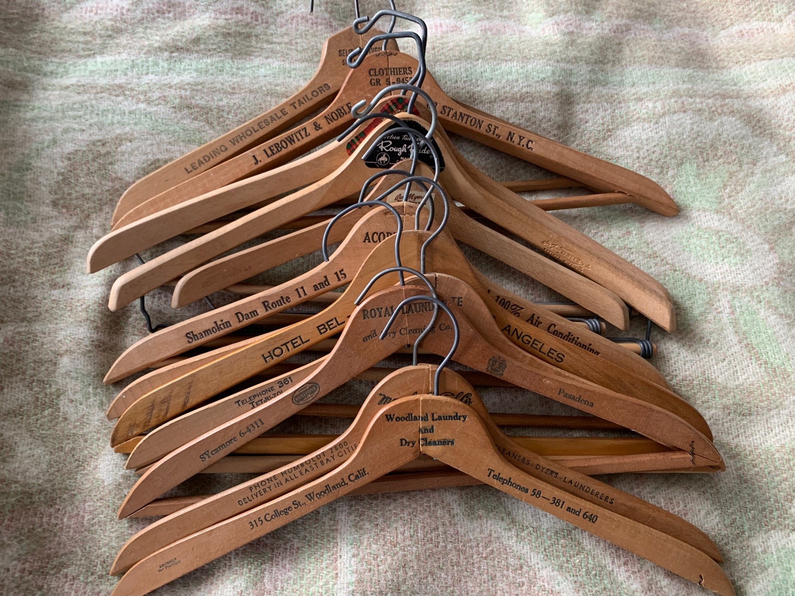 как выглядит Lot 12 Vintage Wooden Hangers All W/ Advertising Los Angeles S. F. New York фото