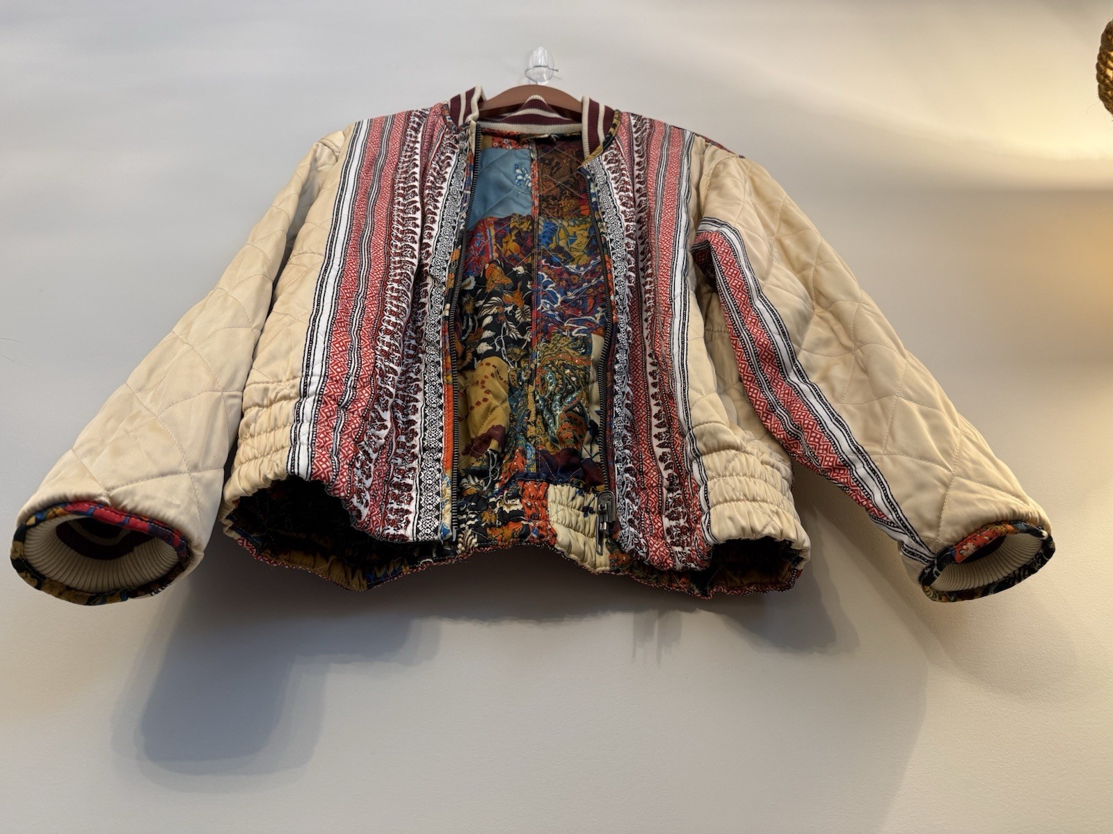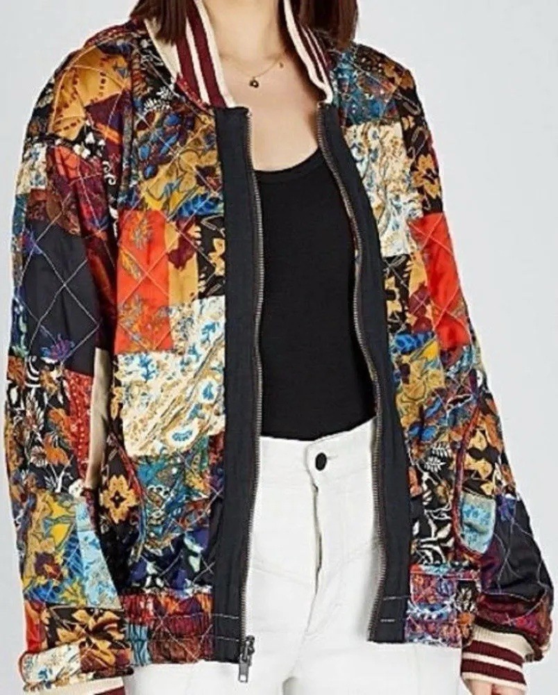 как выглядит Free People Pandora Bomber Patchwork Jacket Reversible Zip Up Small 248 фото
