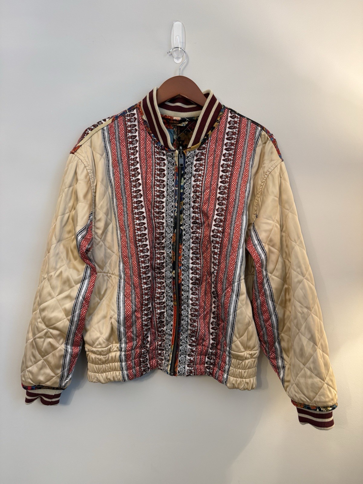 Free People Pandora Bomber Patchwork Jacket Reversible Zip Up Small 248